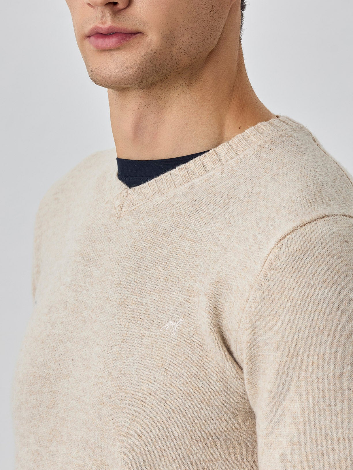 Machine Washable V-Neck Sweater With Long Sleeves In Lambswool