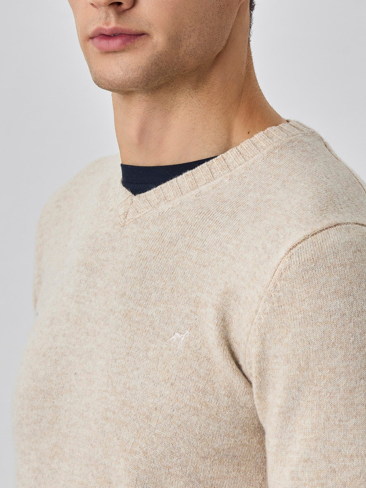 Machine Washable V-Neck Sweater With Long Sleeves In Lambswool