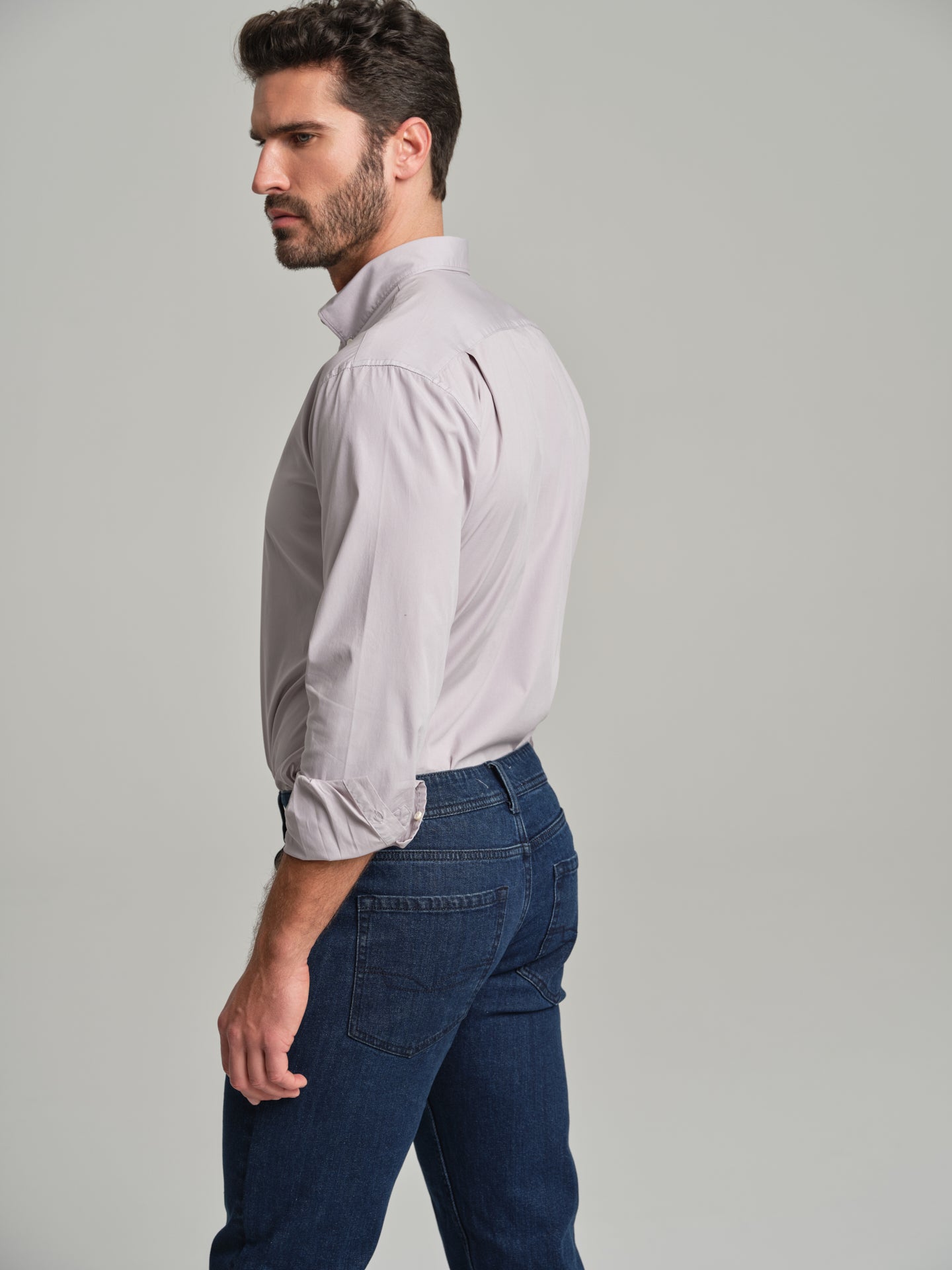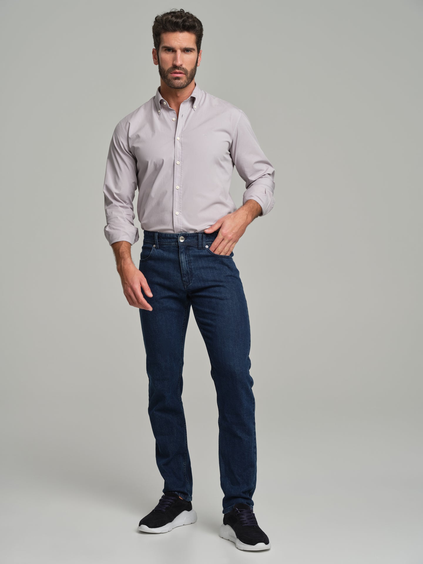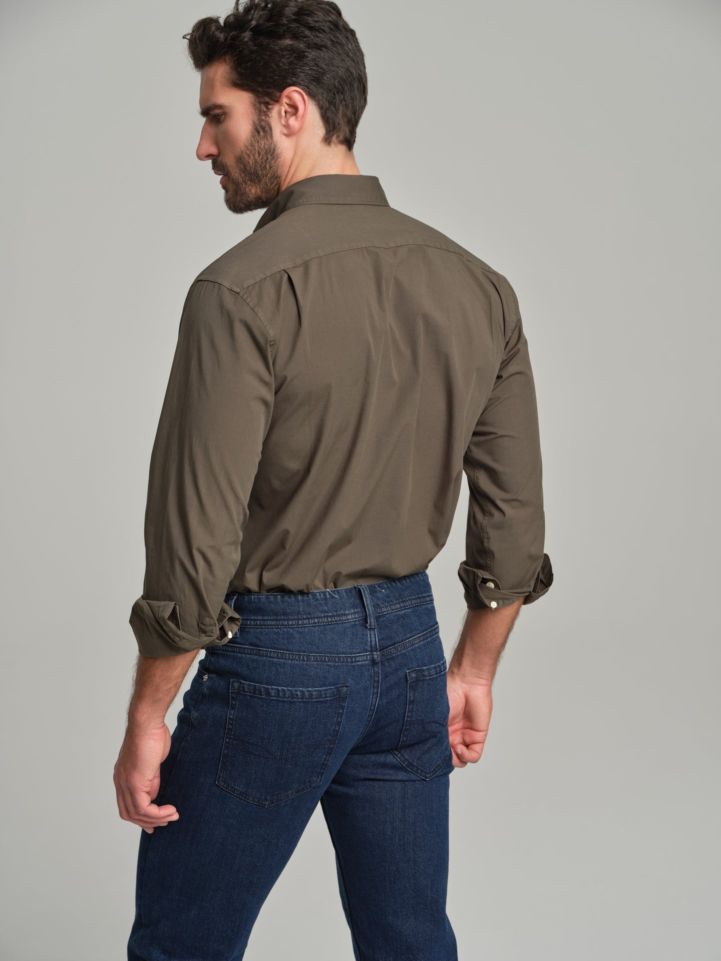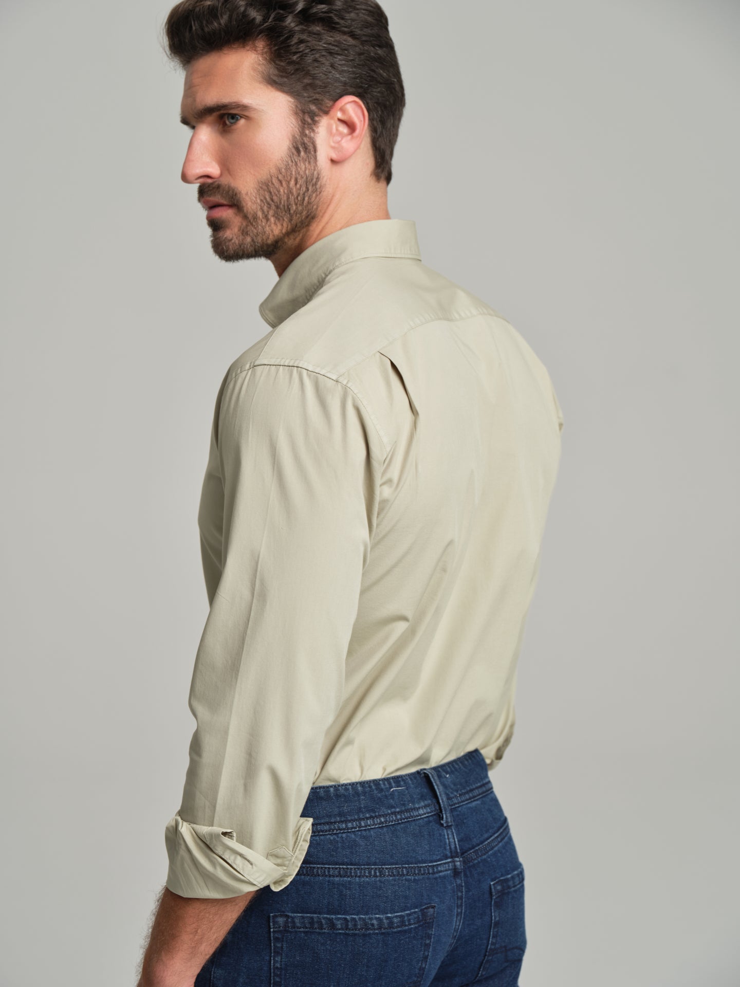 Sport garment dye shirt in plain poplin. Fabric made of 100% cotton. Featuring a button-down collar and front button-up fastening. Long sleeves with single cuffs with 2 buttons. Chest logo embroidery. Details such as last front button in contrast color and inside yoke in contrast pattern.