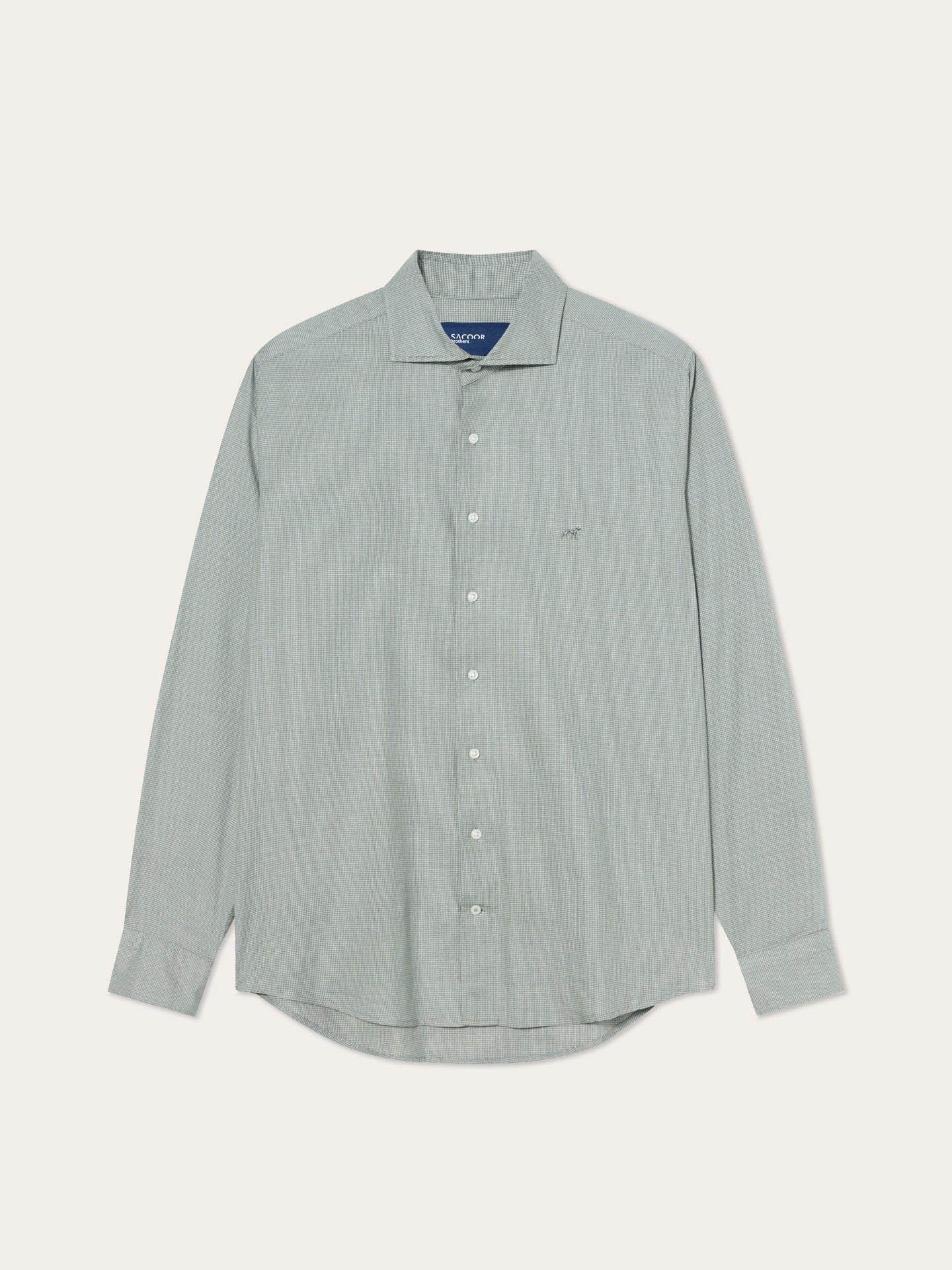 Slim Fit Mélange Pied-de-Poule Cotton Shirt With Newport Collar