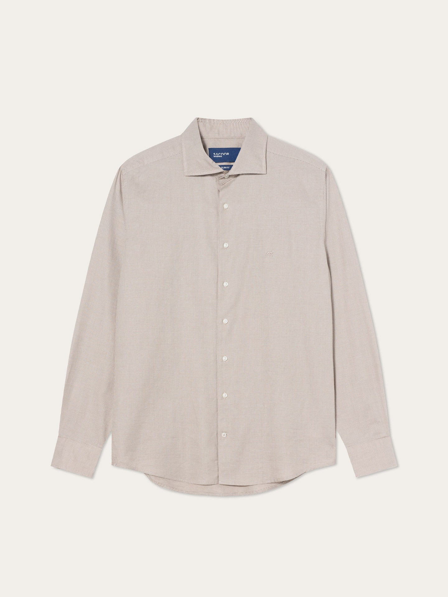 Slim Fit Mélange Pied-de-Poule Cotton Shirt With Newport Collar
