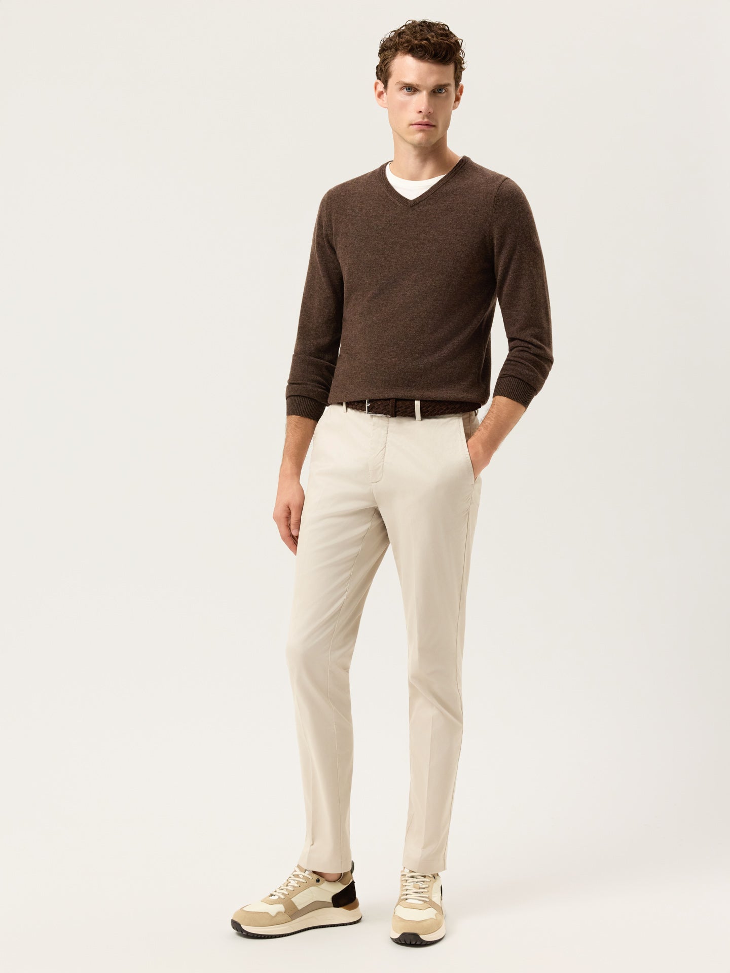 Long Sleeve V-Neck Sweater In Fine Lambswool