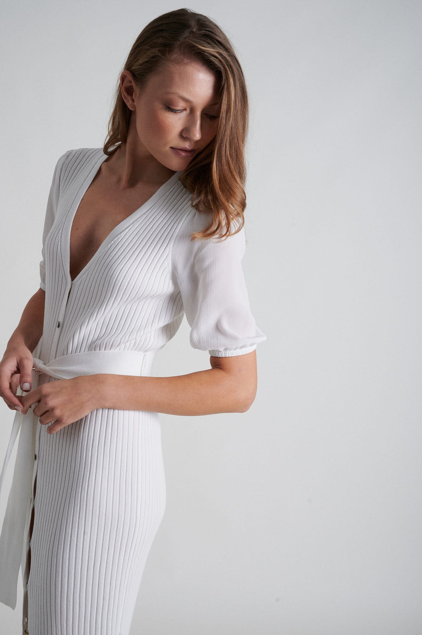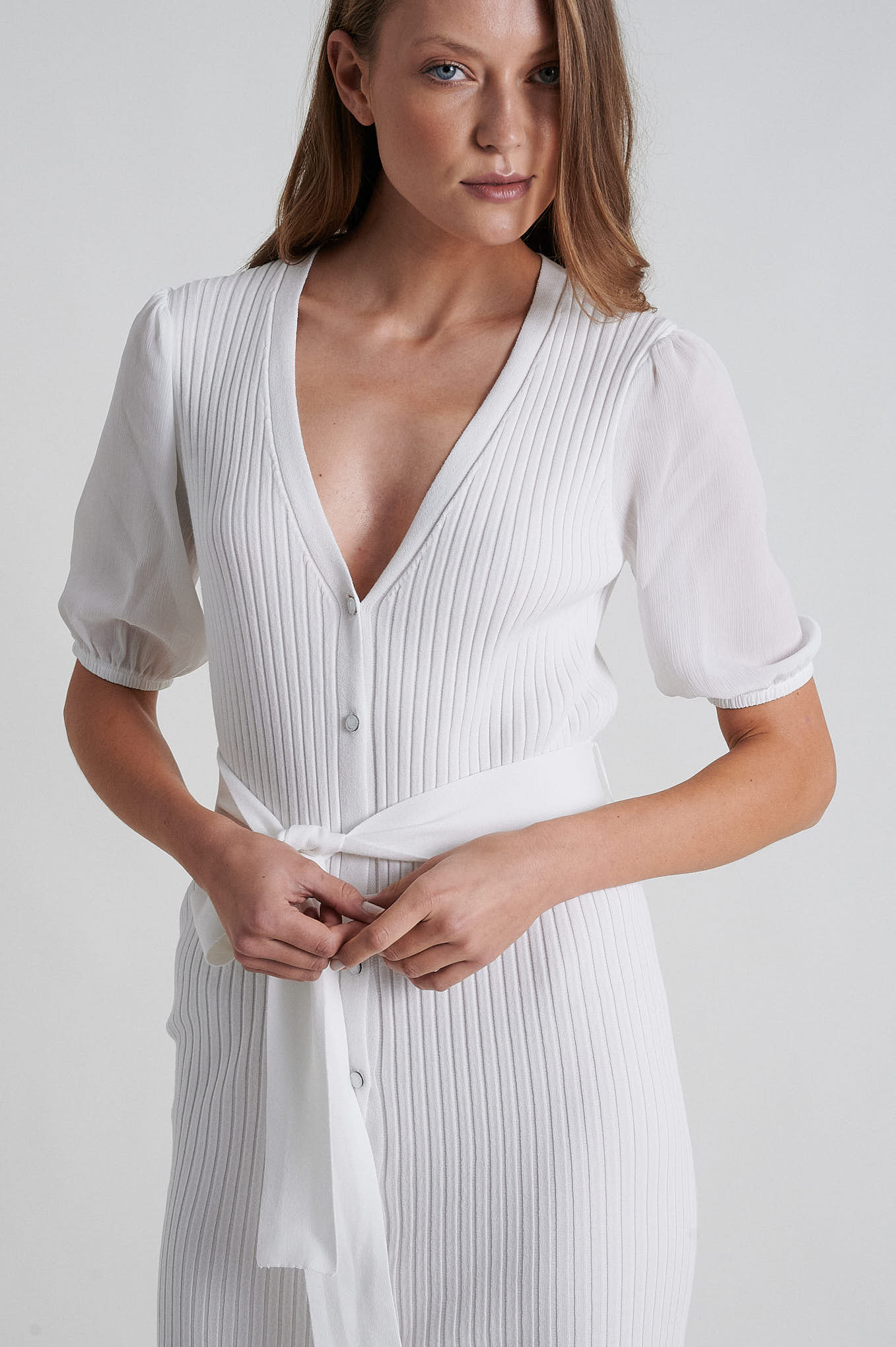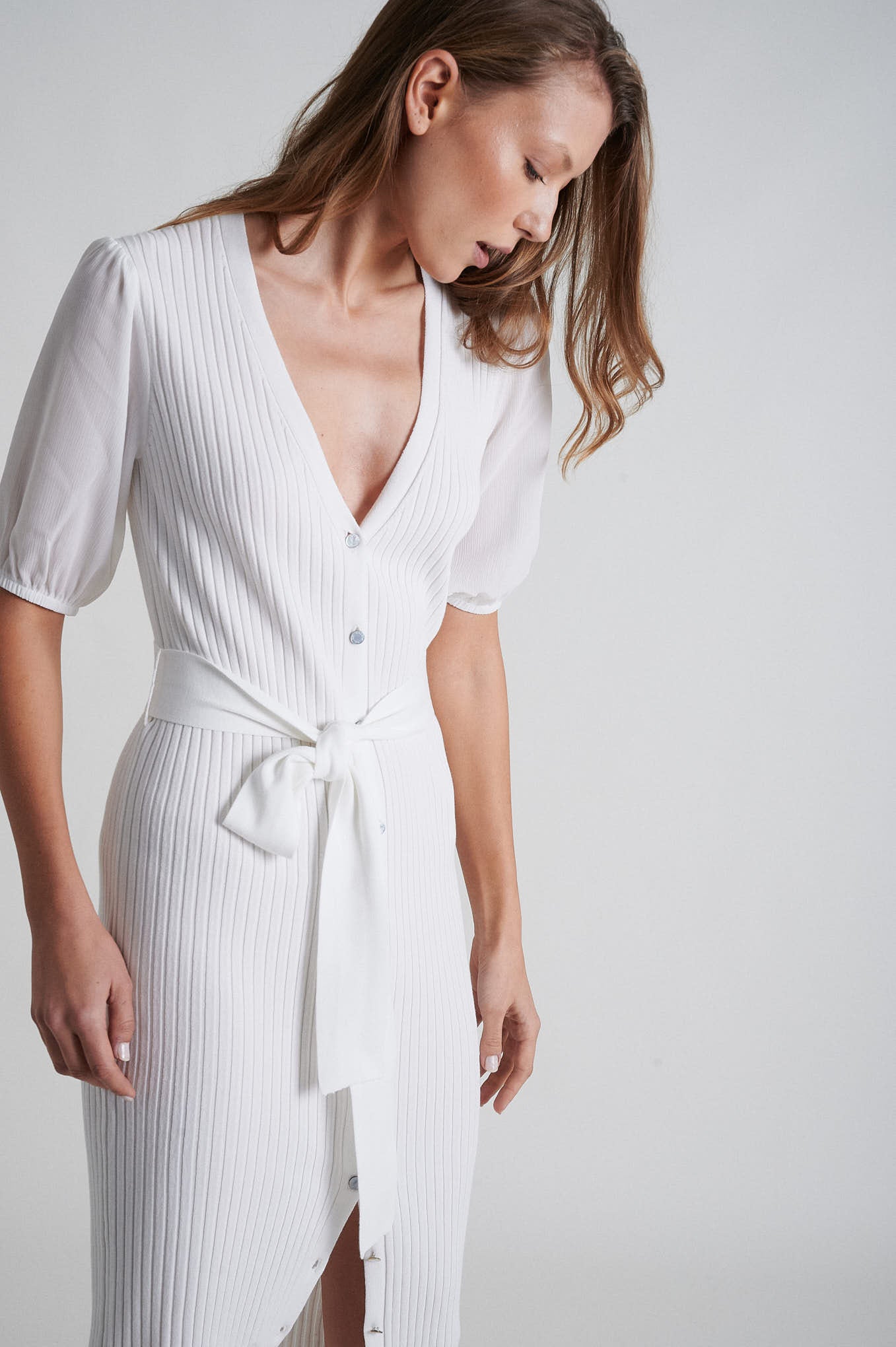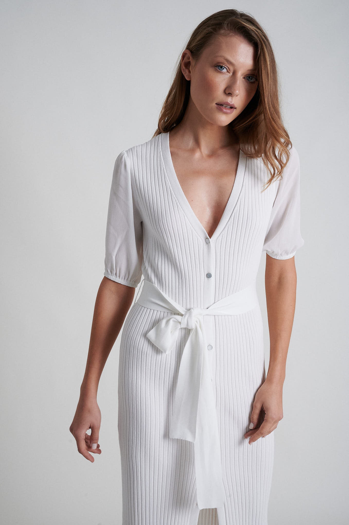 Short sleeve knitted open dress