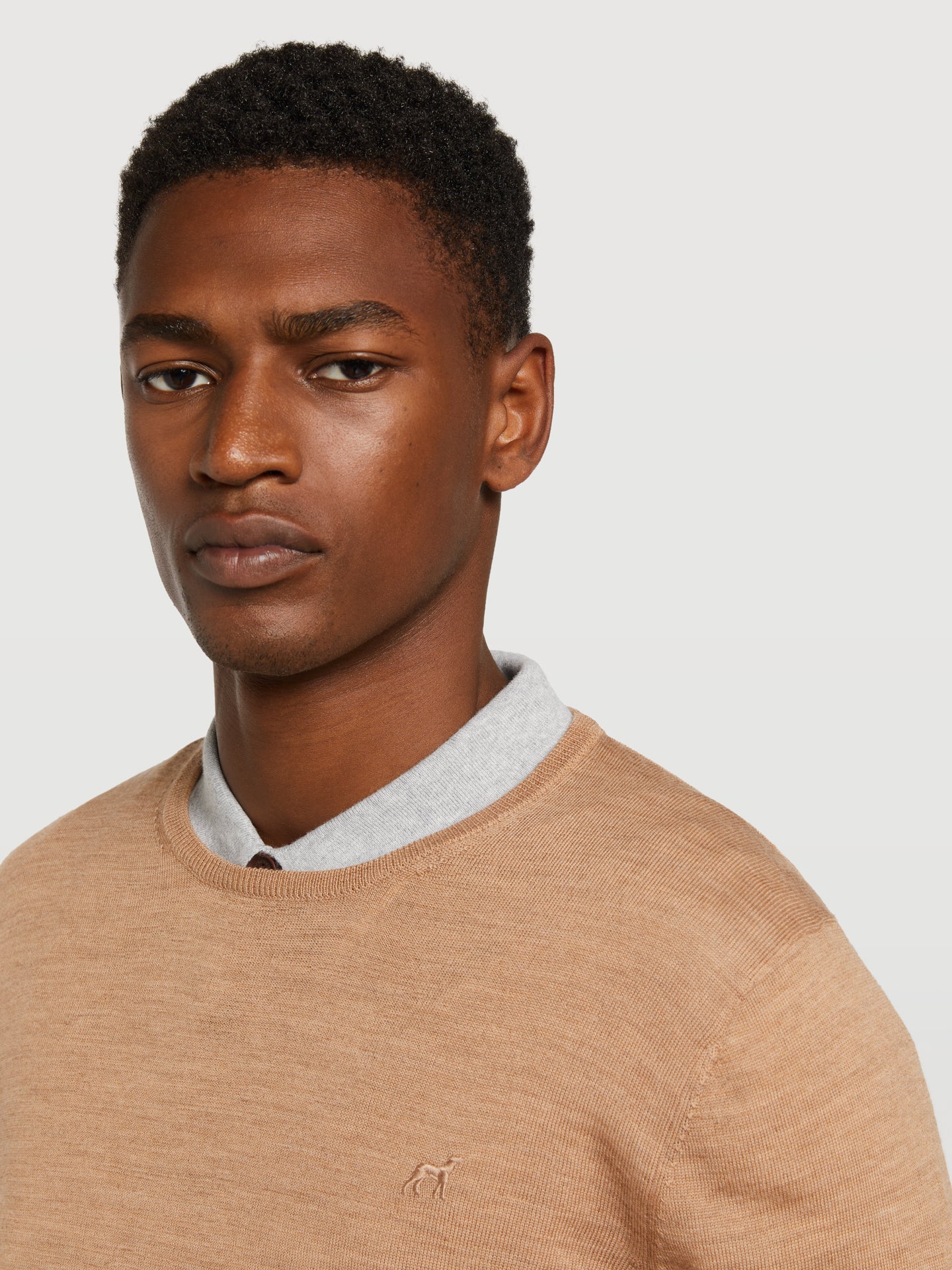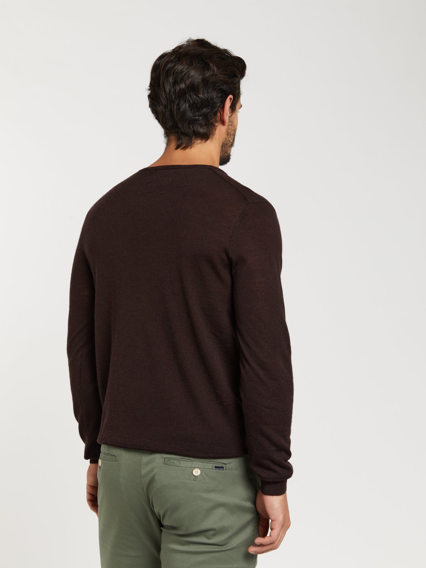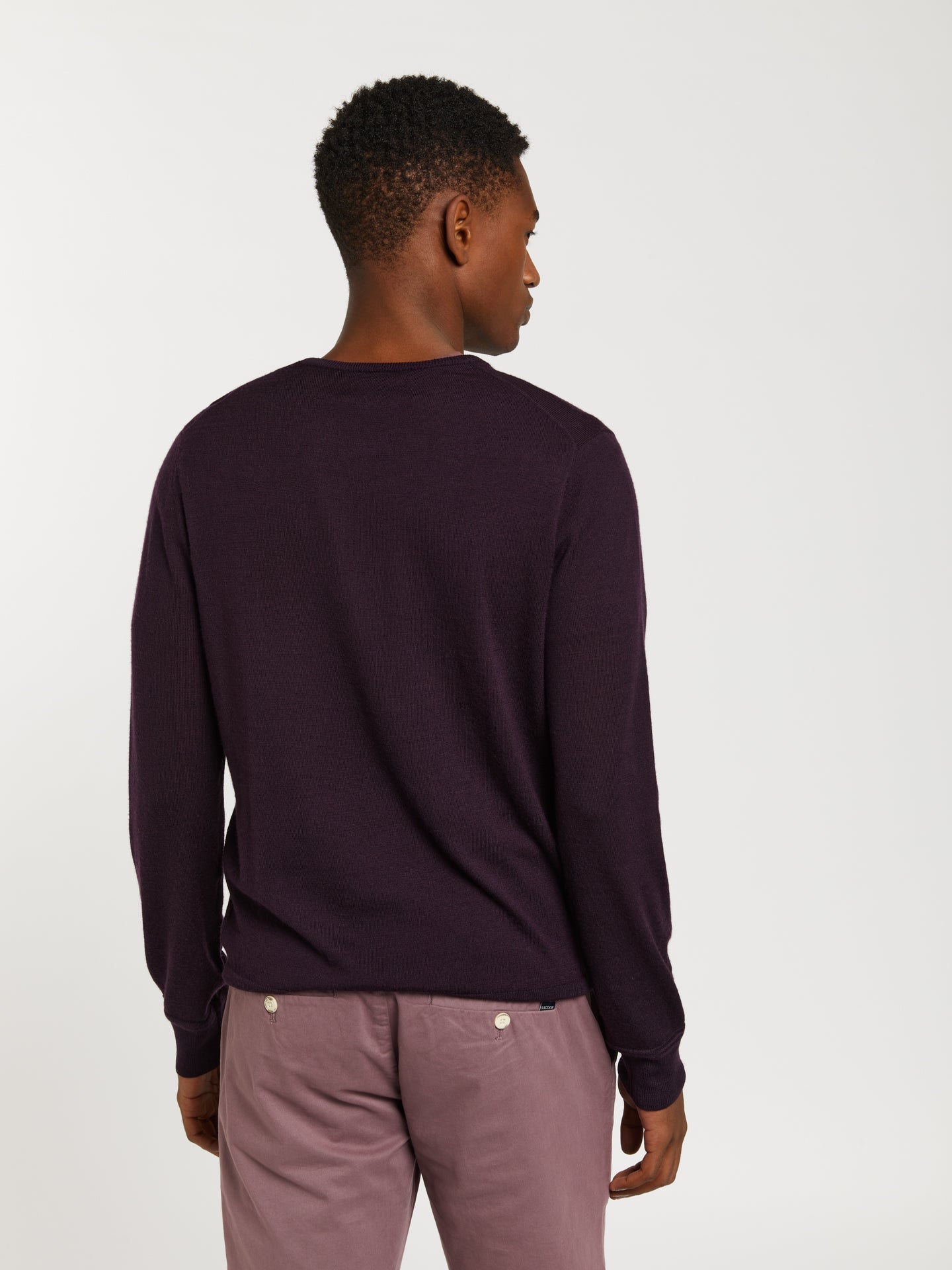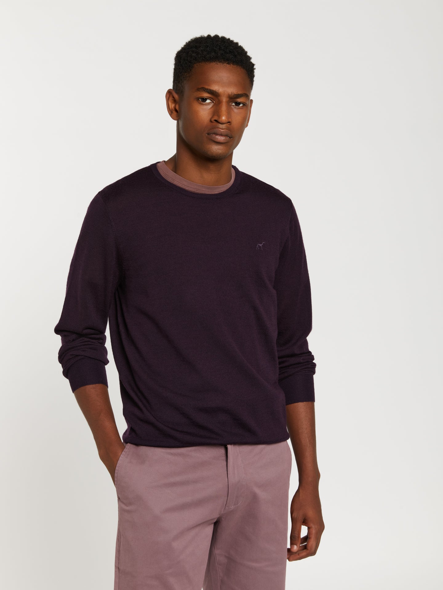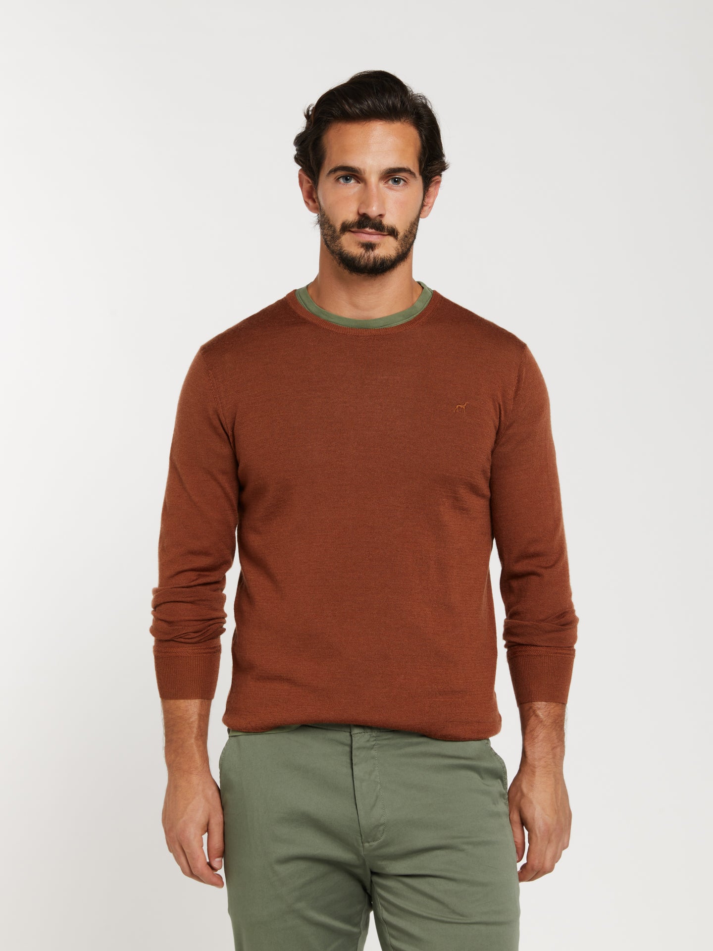 Long sleeve crew neck sweater with chest logo embroidery. This garment is made with 100% Extra Fine Merino Wool.