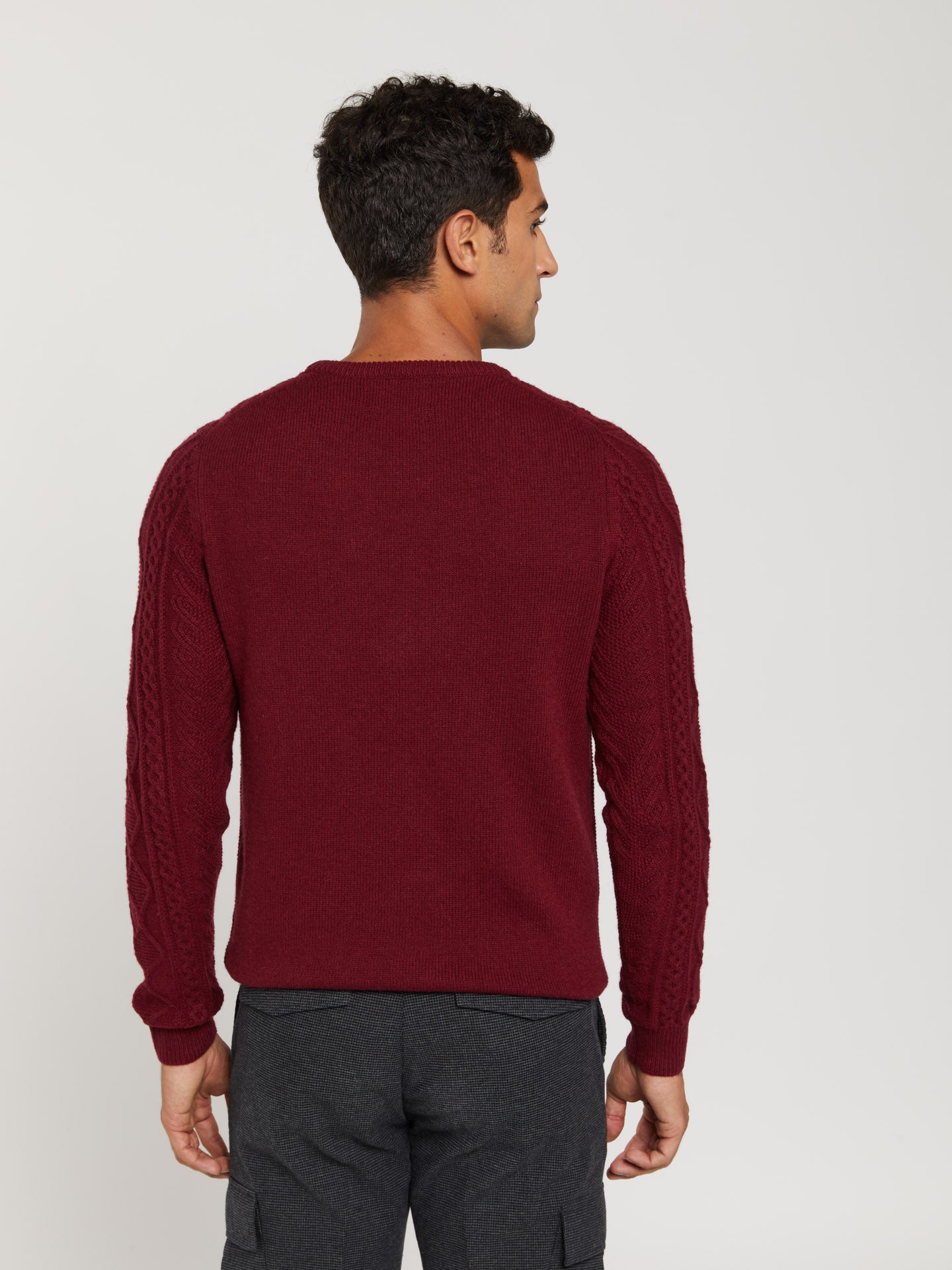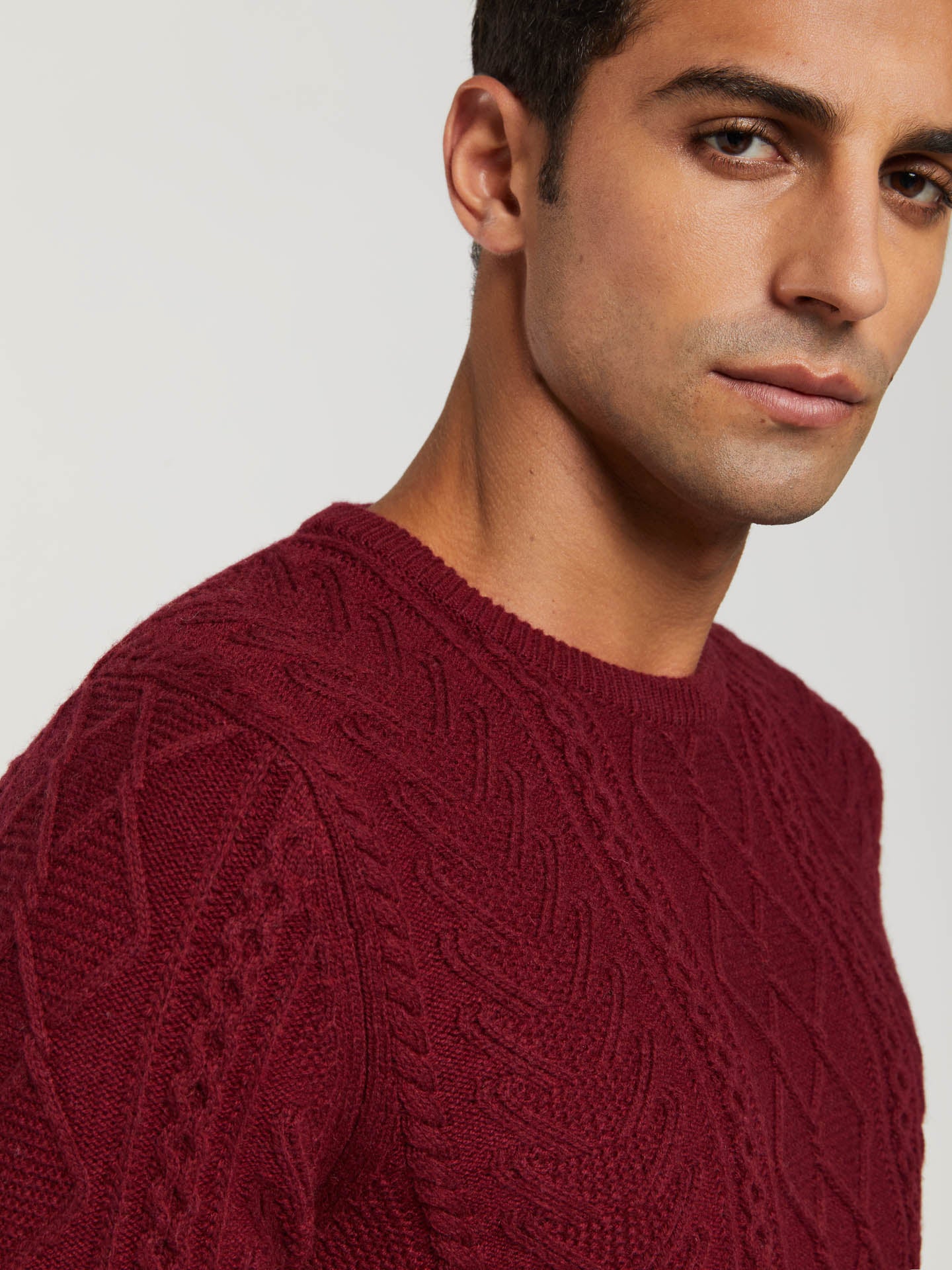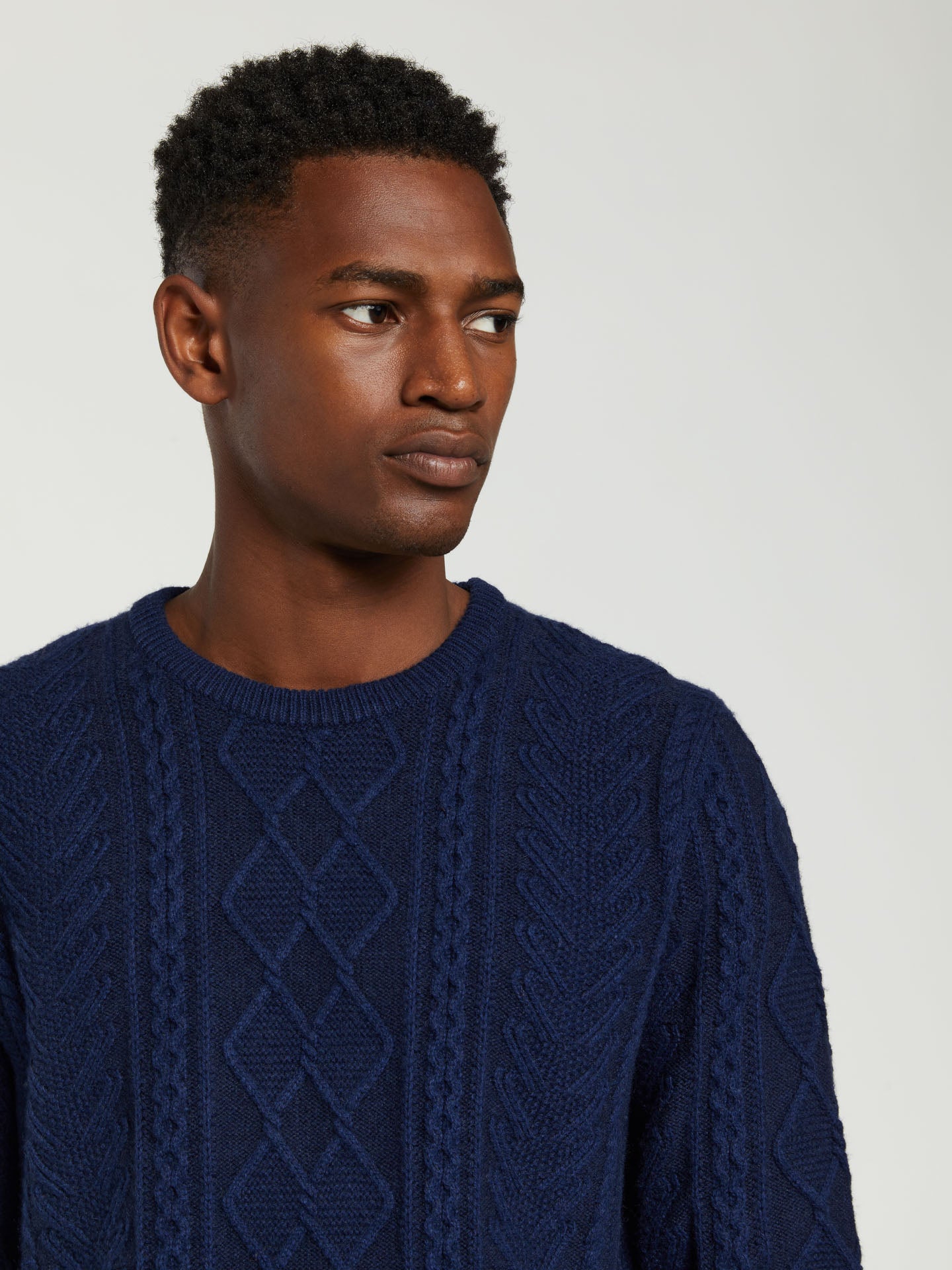 GEN Z capsule long sleeve crew neck sweater with fancy cable knitting on front and sleeves. Featuring brand plate. This Special Edition garment is made with Lambswool and Cotton blend. Fighting for inclusivity and gender-neutrality, our Generation Z capsule collection is a youthful; genderless exploration, giving rise to individuality, diversity and positivity. It is a relevant edit of luxurious streetwear styles easily worn by men and woman.