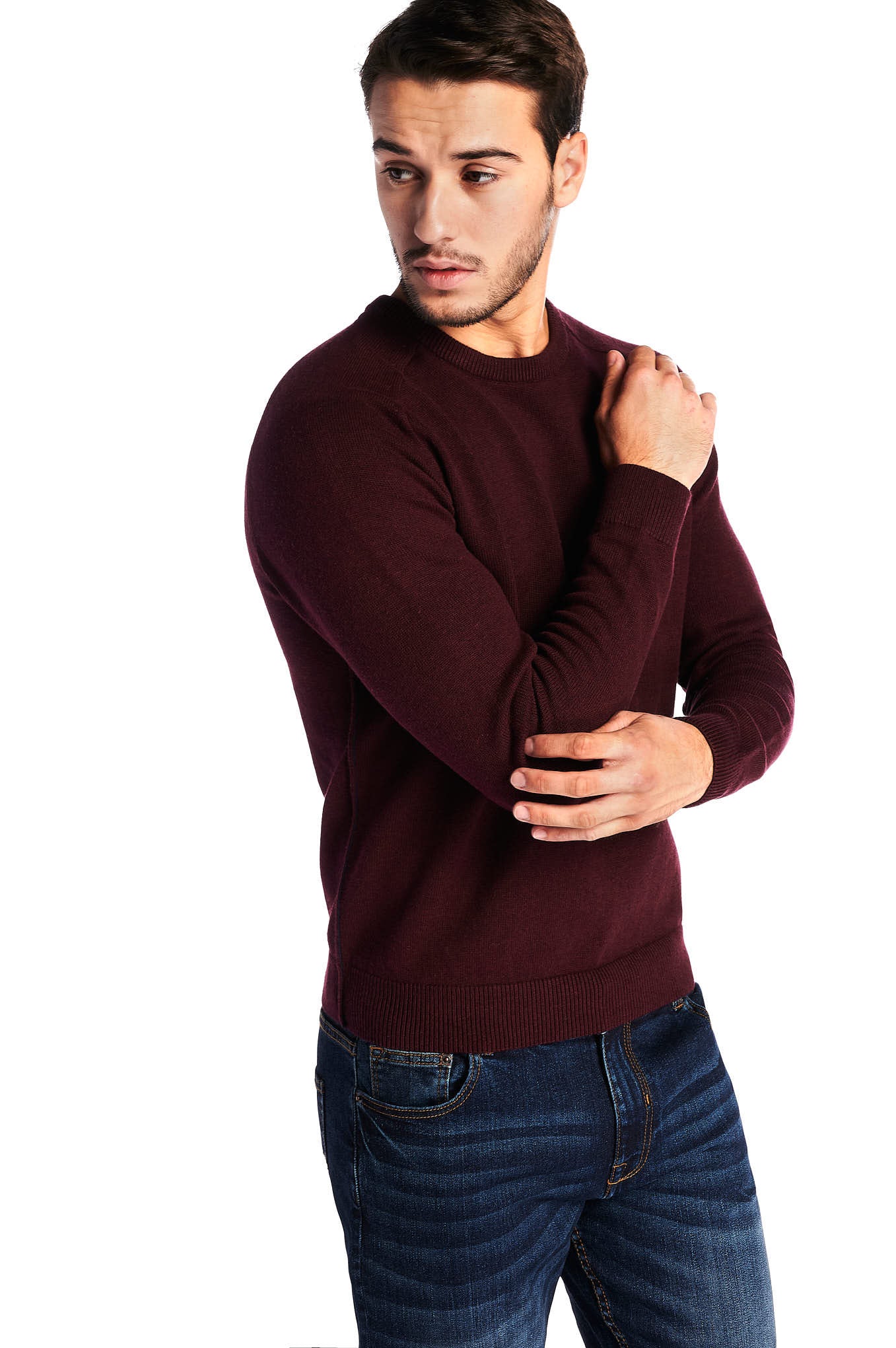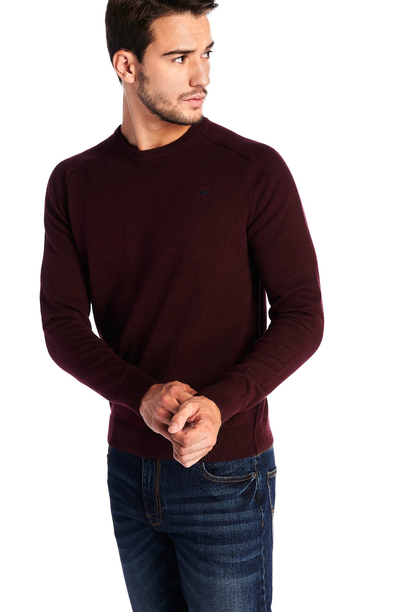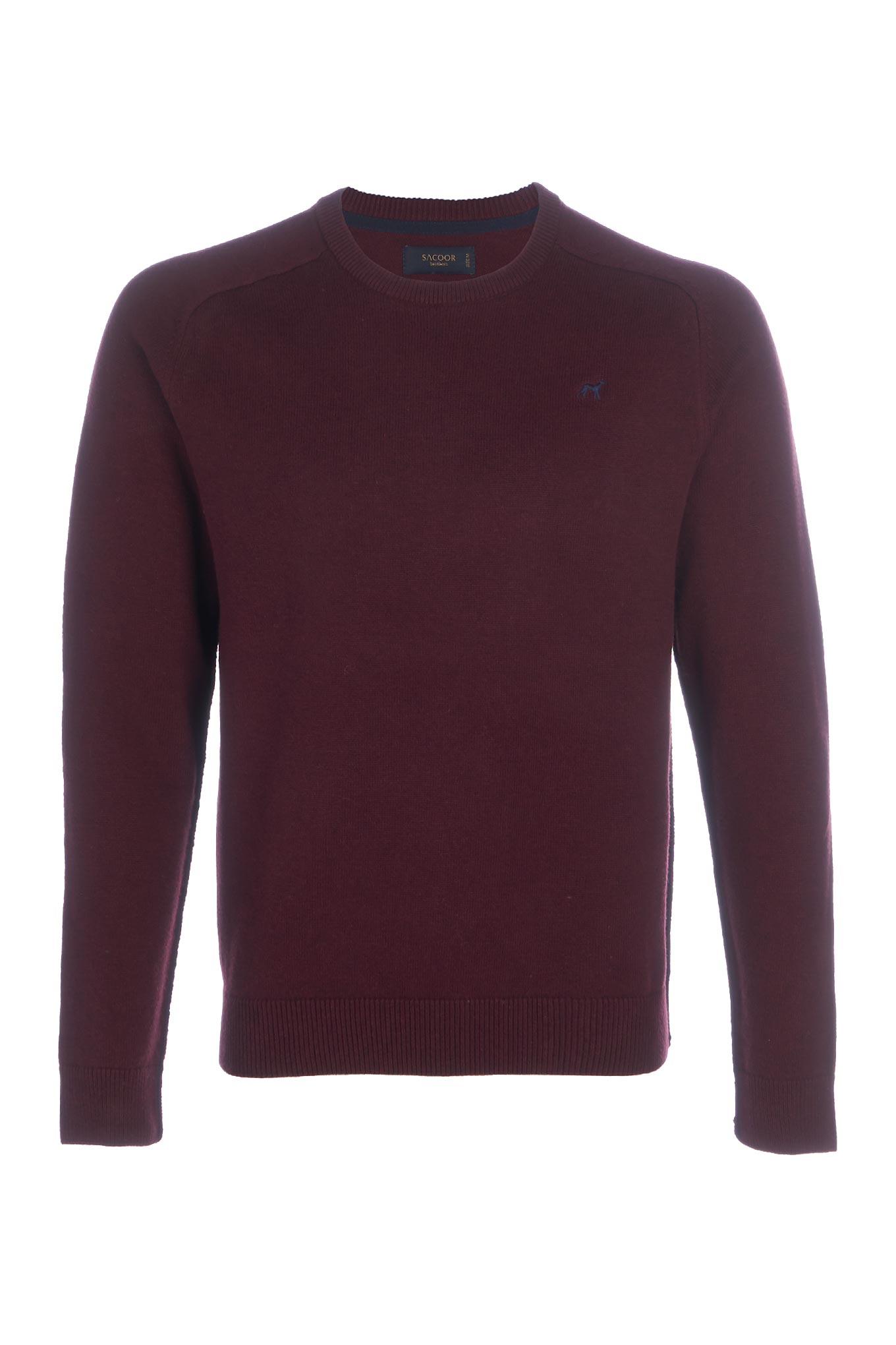 Men's plain knitted sweater. Regular cut, wider silhouette. Rounded neckline . Sacoor logo embroidered on the chest pocket. Bright contrast toned on the sides, which extend into the sleeves. Ribbed finish. Set mesh 7-9, warm and cozy. Collection Autumn / Winter 2019 is available in the online store Sacoor Brothers.