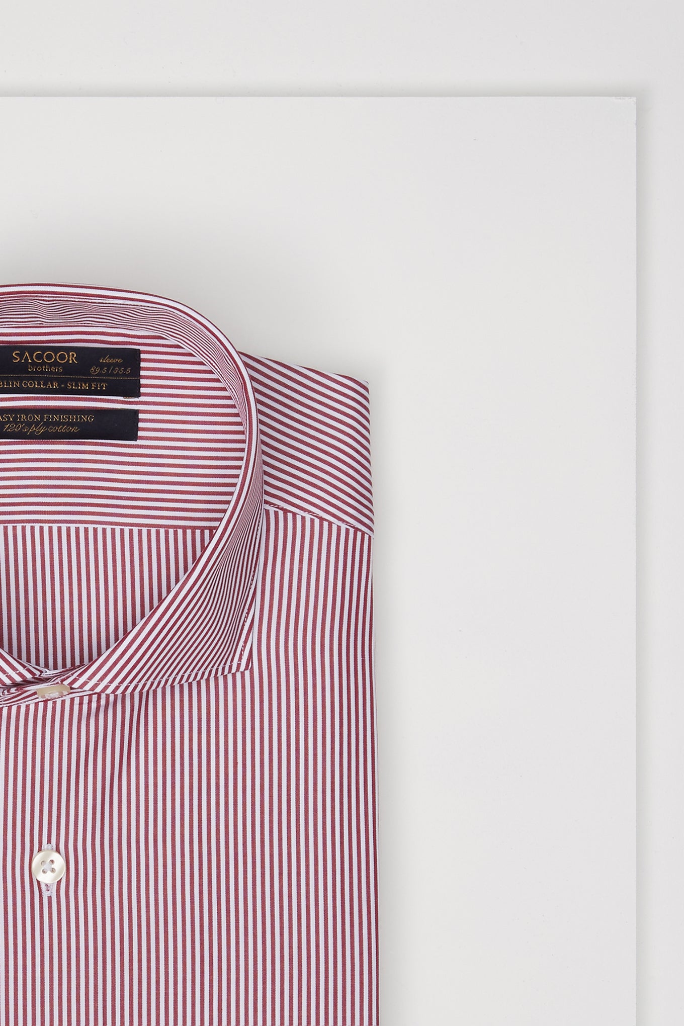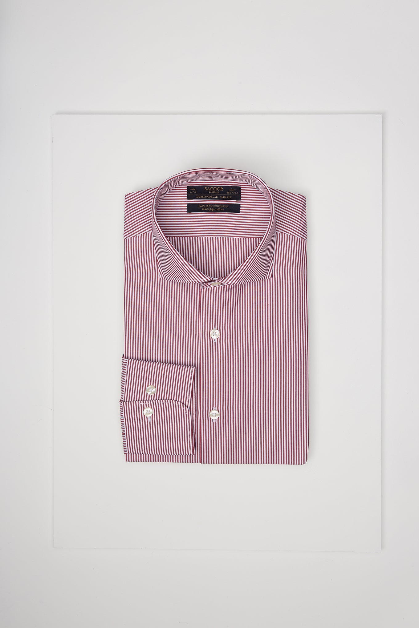 Men's striped slim fit classic shirt. Dublin collar with stays. Pure cotton long sleeve shirt with cuff buttons. Available at Sacoor Brothers' online store.