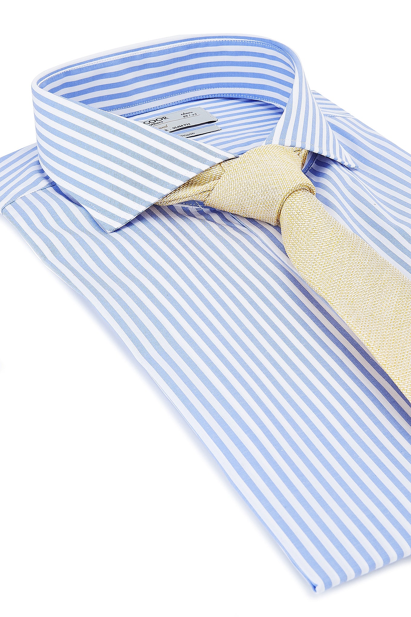 Men's shirt, classic cut, striped pattern. Open collar, with stays included. English stitching, more comfortable with a quality finish. Side support from triangular seams. Cotton and elastane fabric for greater comfort and flexibility. Travel edition shirt, designed for businessmen on the go. We want our Travel collection to offer freedom of movement, comfort and easy maintenance. The size 40 back length is 78 cm and the sleeve length is 63 cm. See our Size Guide.