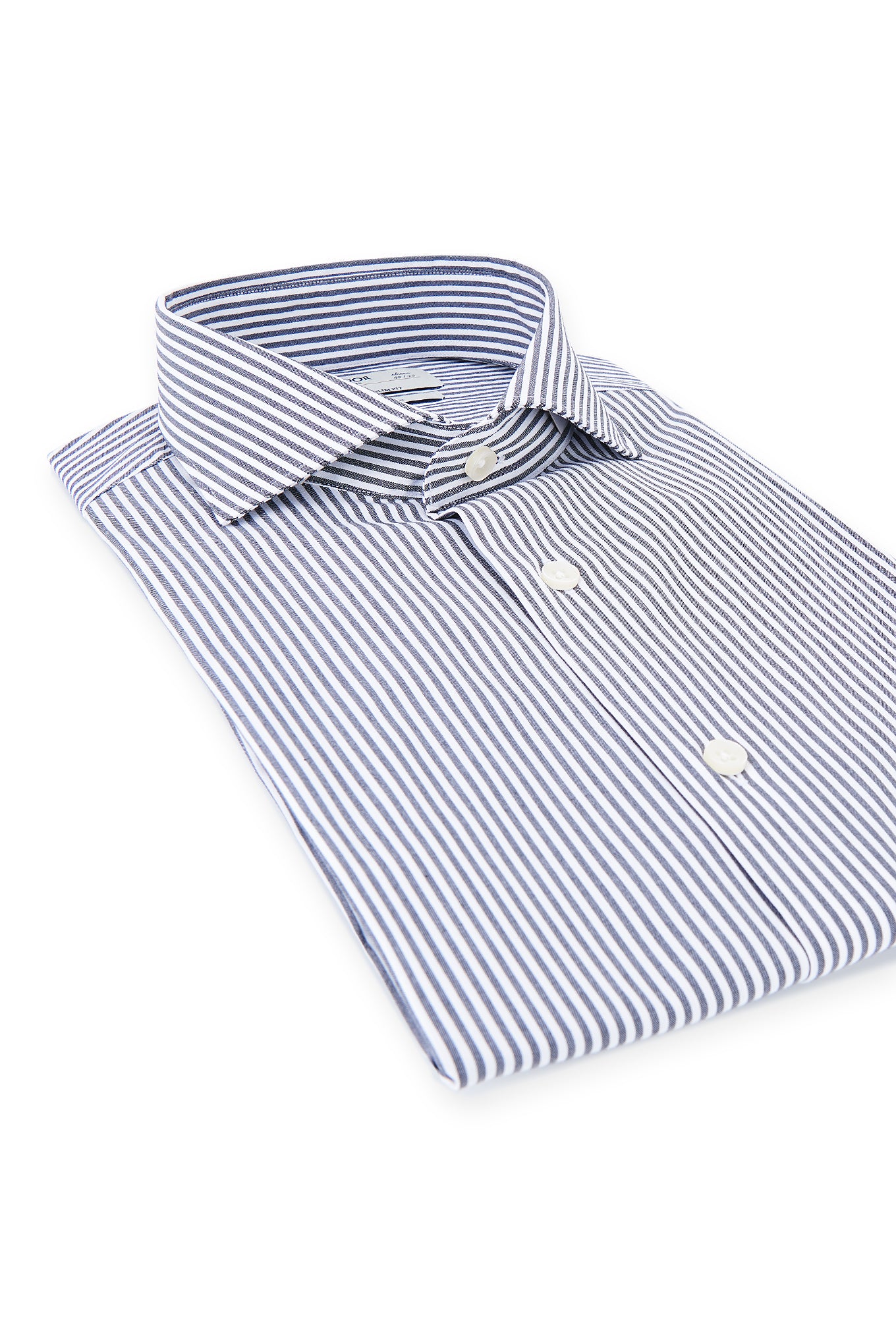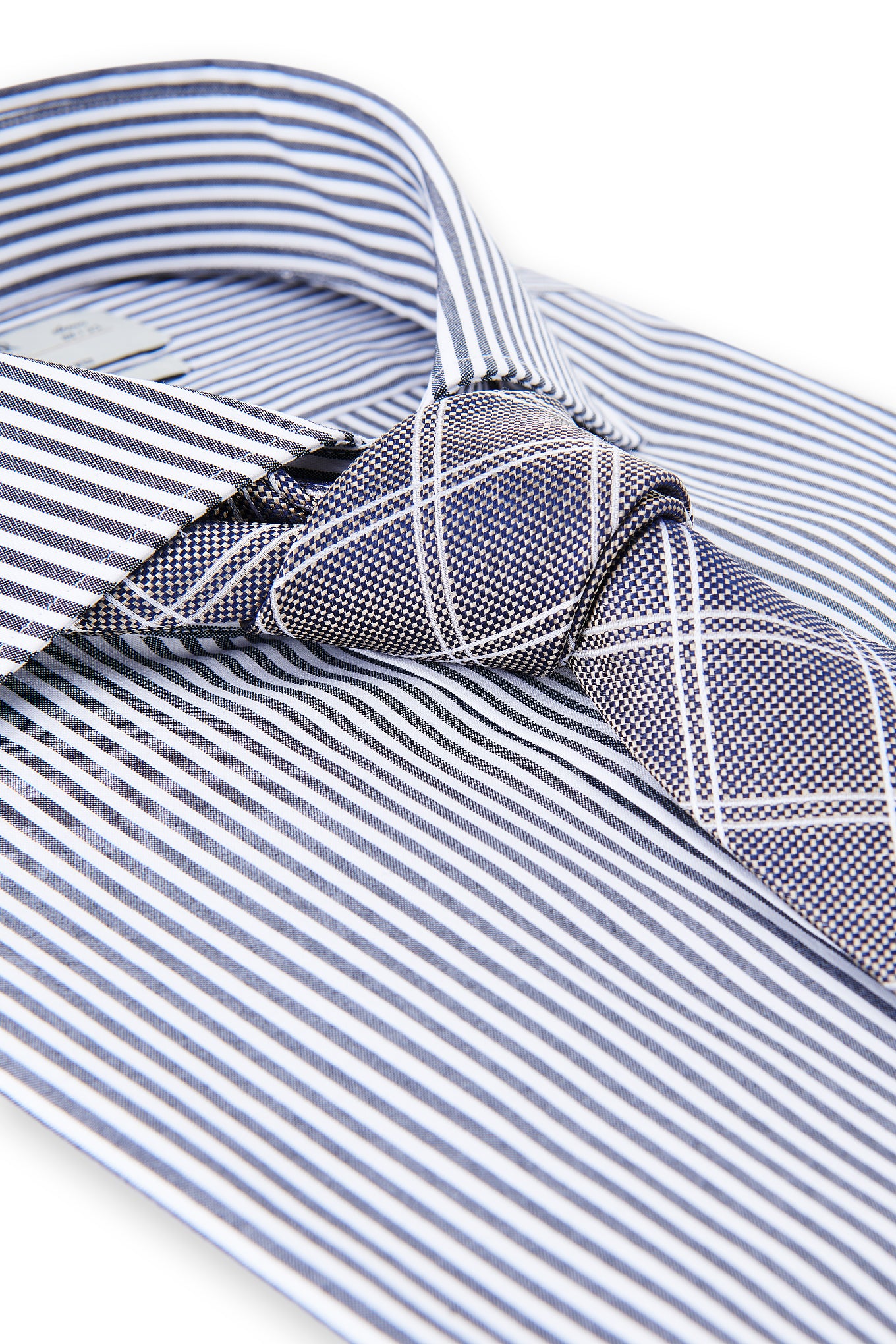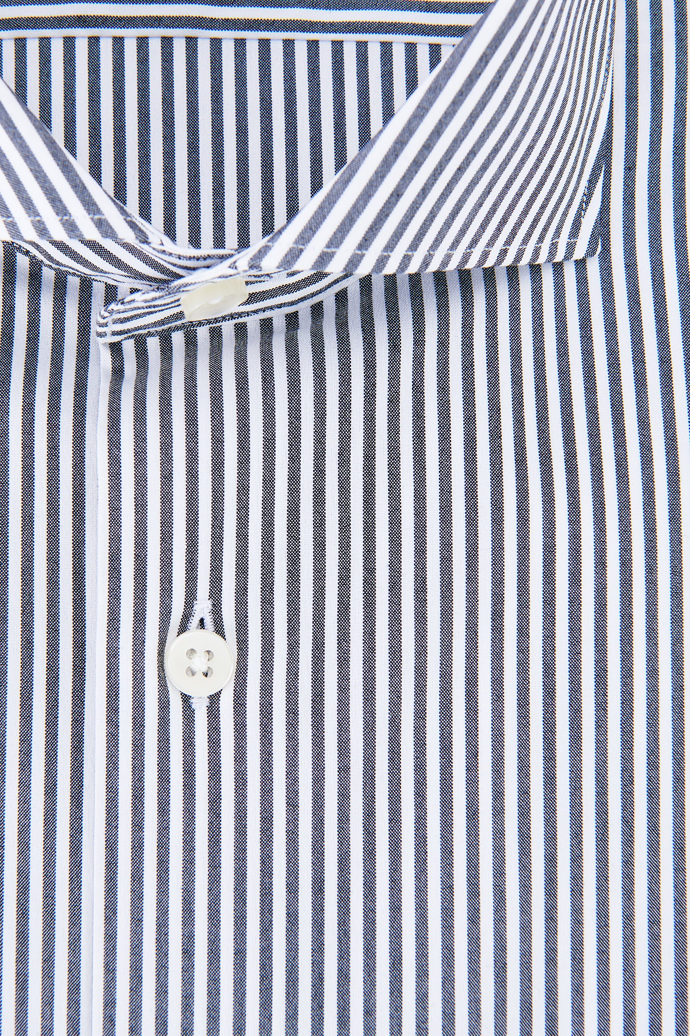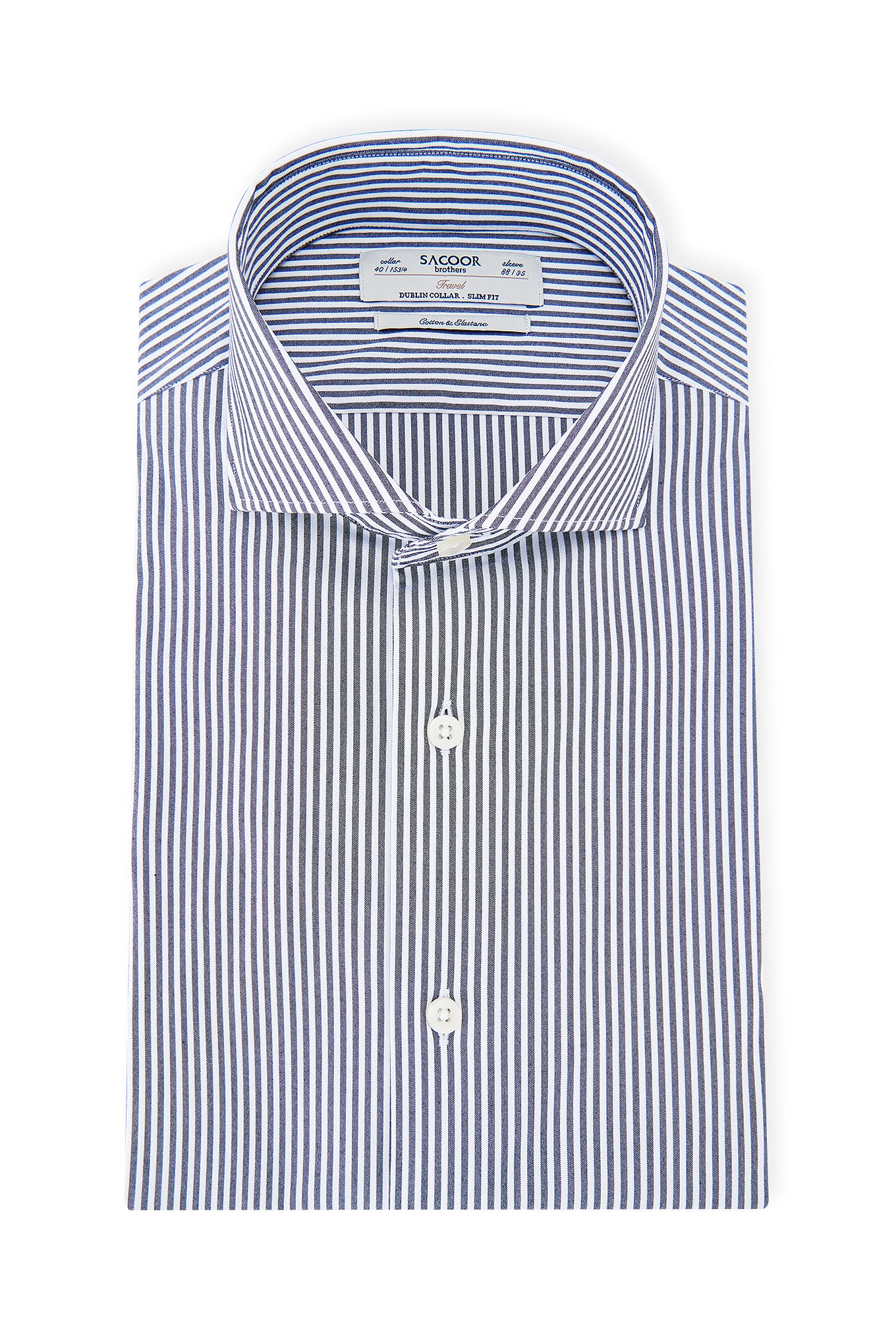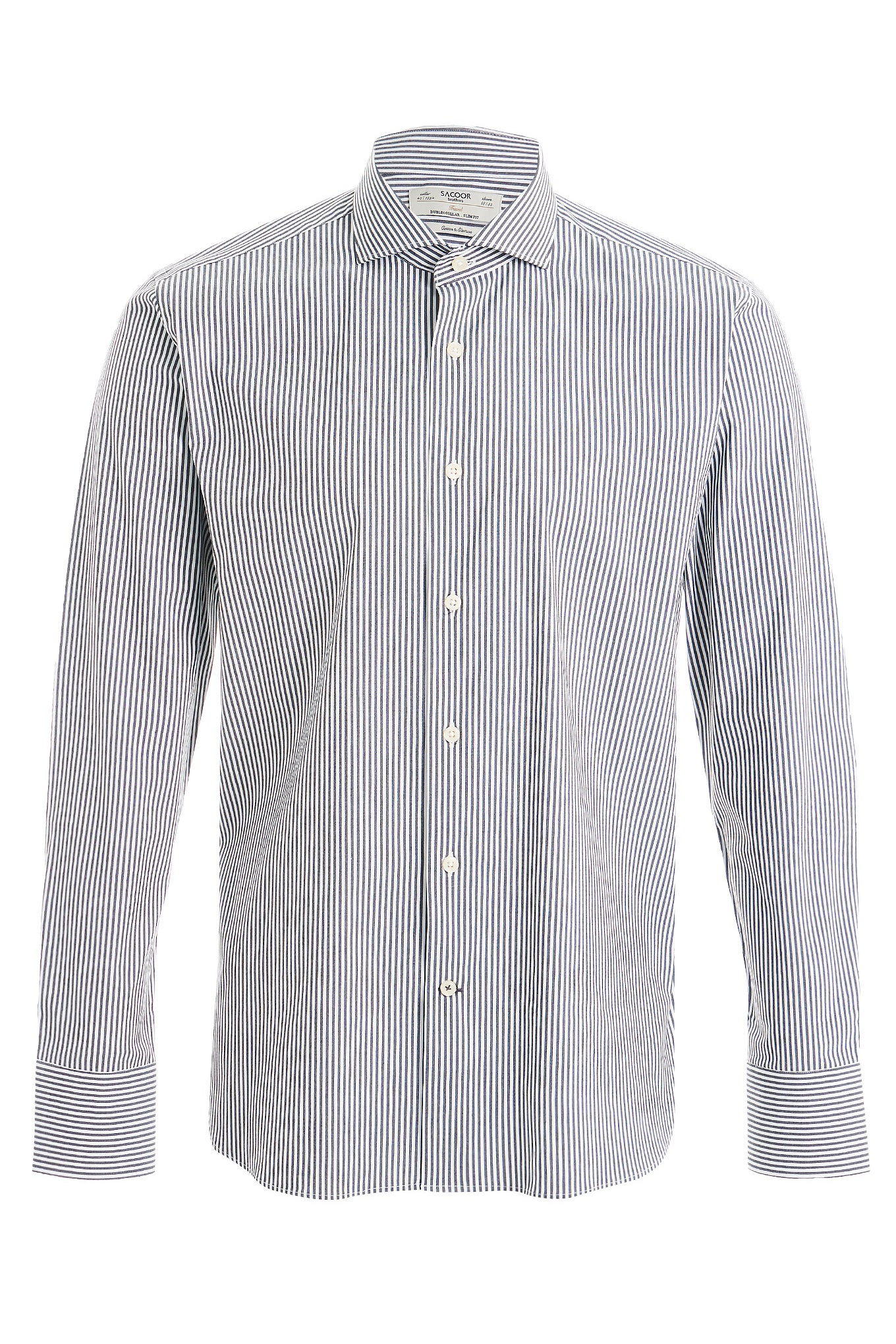 Men's classic shirt with a striped pattern. Open collar with stretchers included. English seams, more comfortable and for a quality finish. Side reinforcement in triangle seams. Cotton and elastane fabric for comfort and flexibility. Includes practical fabric bag with cord. Travel edition shirt, thought for businessmen traveling. We want our Travel pieces to offer freedom of movement, comfort and easy maintenance. Available on Sacoor Brothers online store. The length of the back in the size 40 is of 78 cm and the length of the sleeve is of 63 cm. Check our Size Guide.