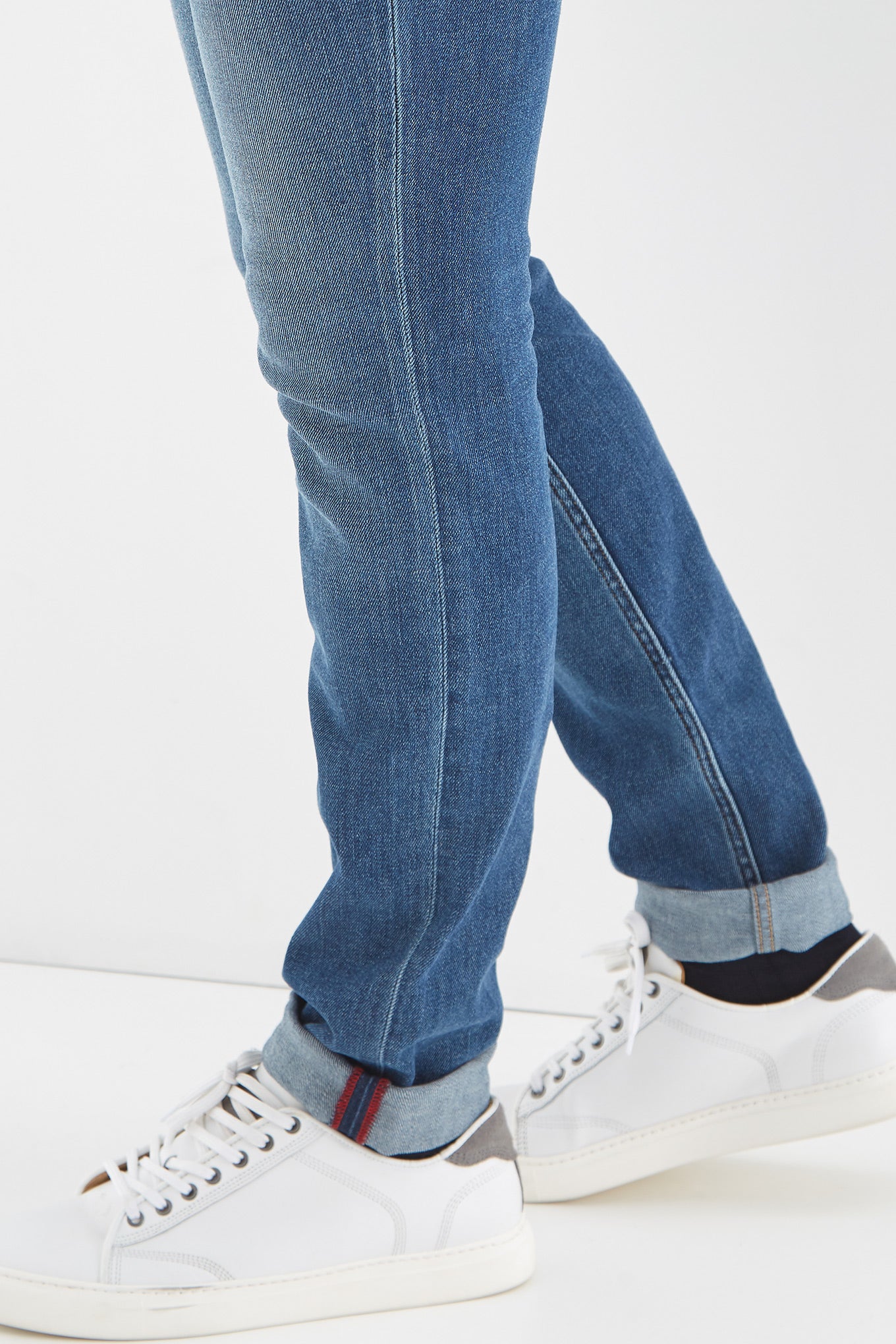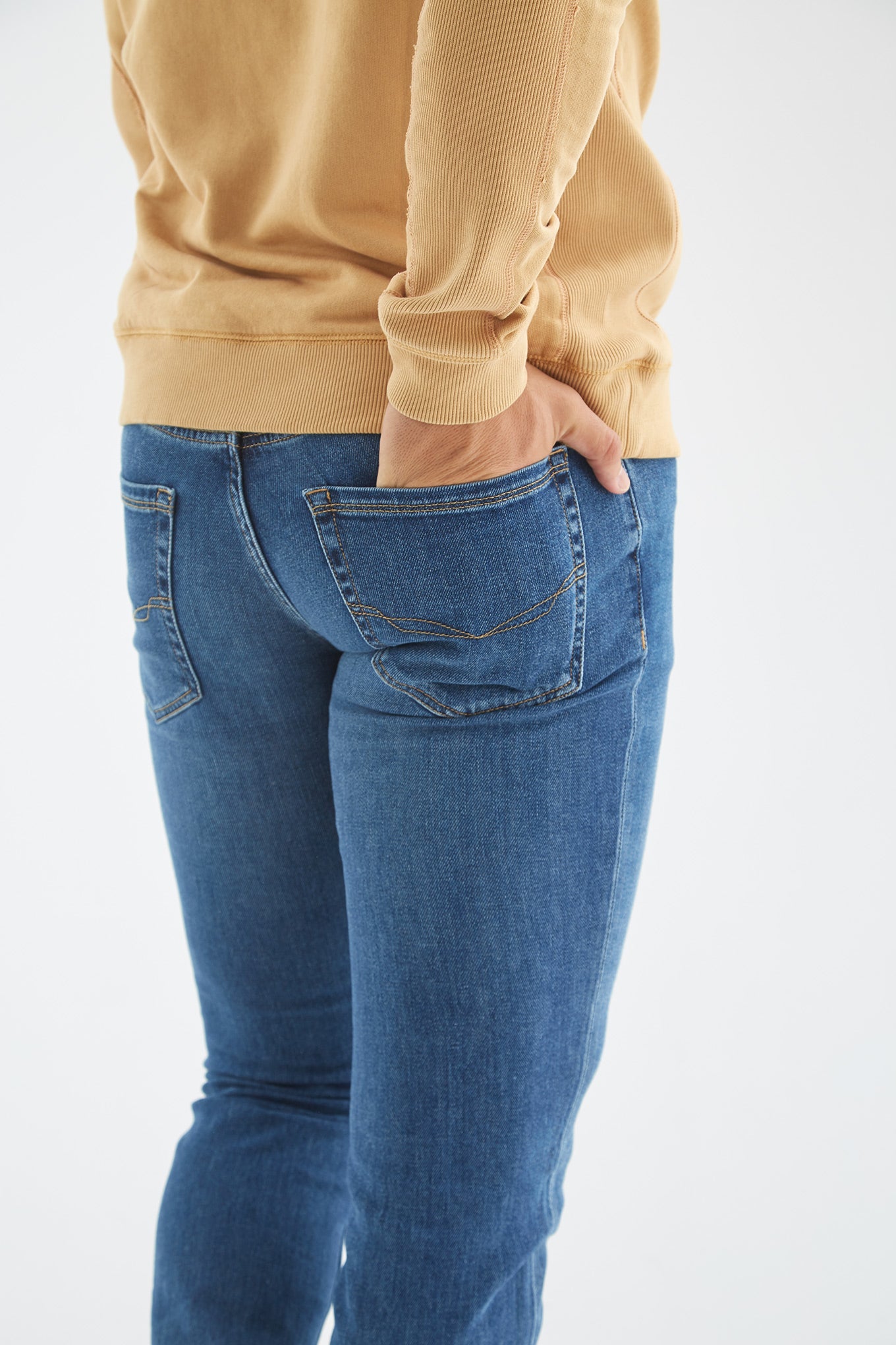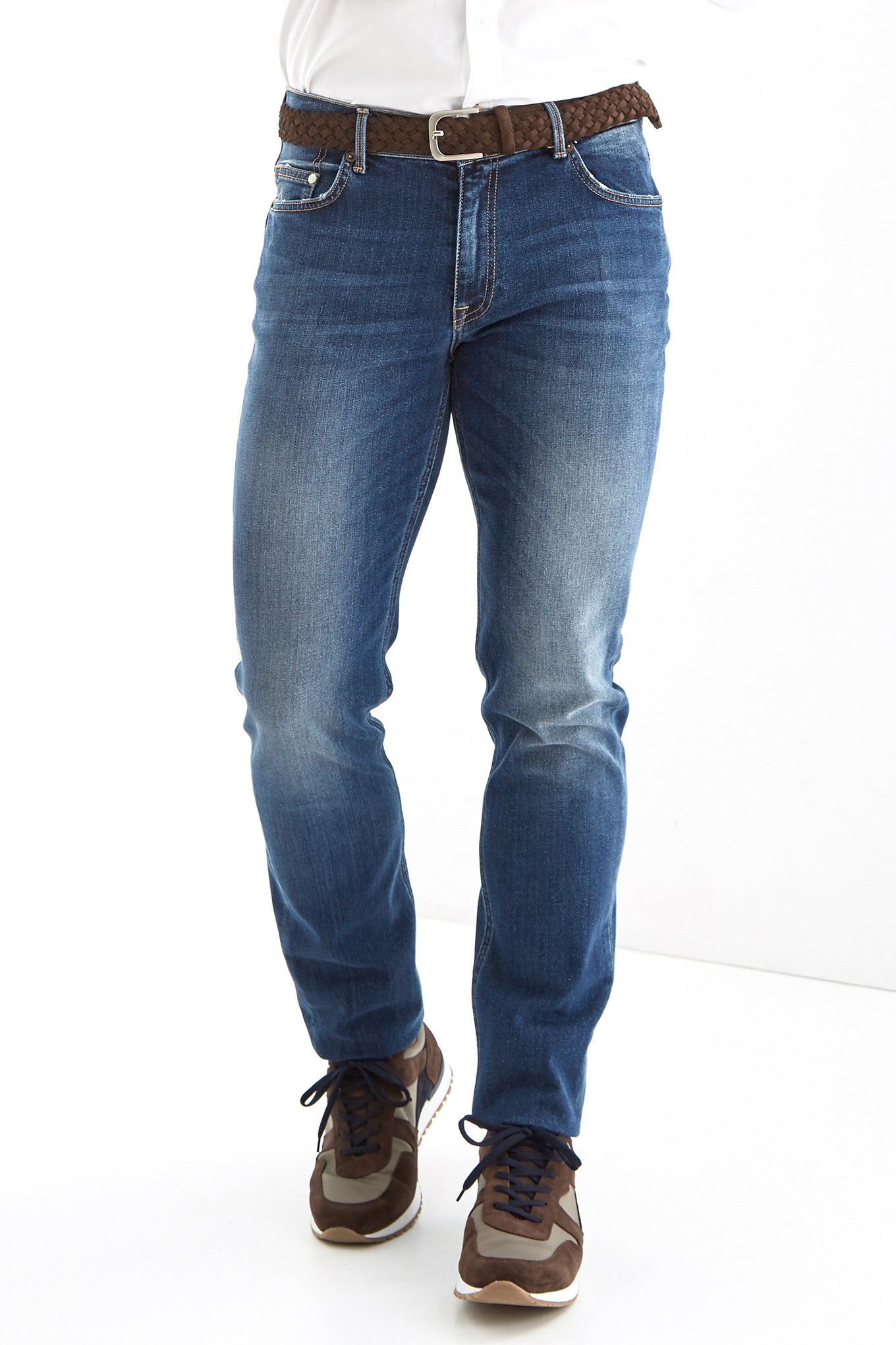 Men's Casual jeans with elasticity, the perfect choice for a relaxed and comfortable look. Features low-rise waist with belt loops, two buttons and zip fastening. Two side pockets and two back pockets.