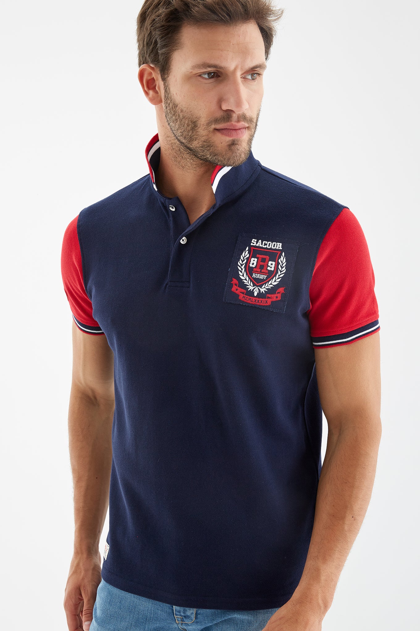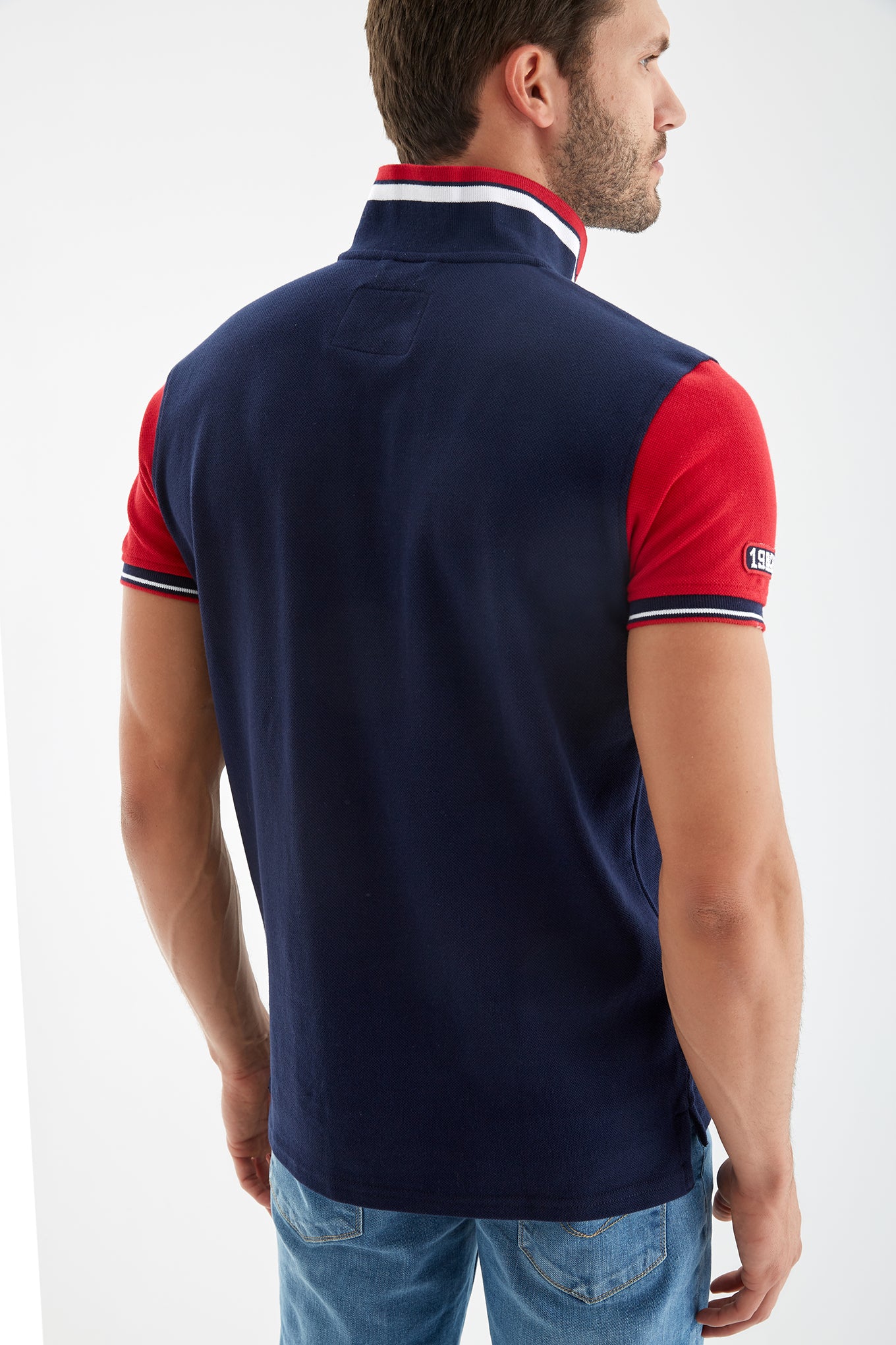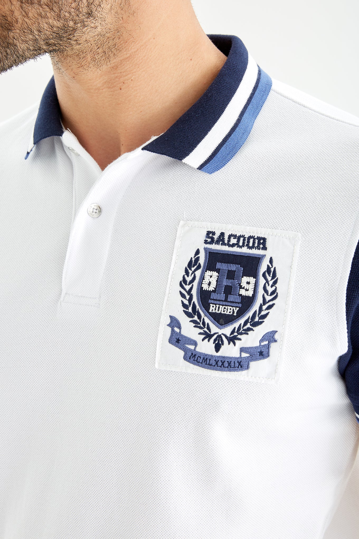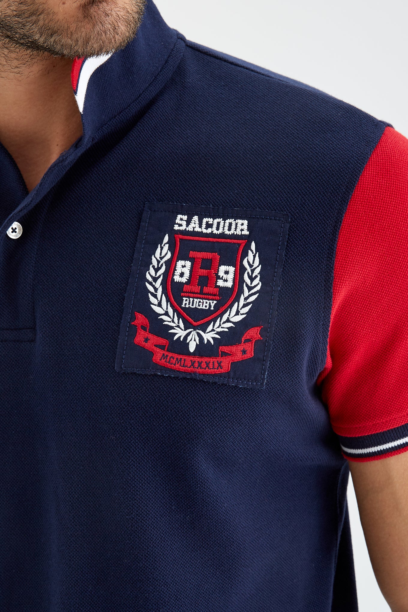Men's slim fit knitted sports polo. Classic neckline, short sleeves with logo detail on the chest. Made of 100% cotton. Available at Sacoor Brothers' online store.