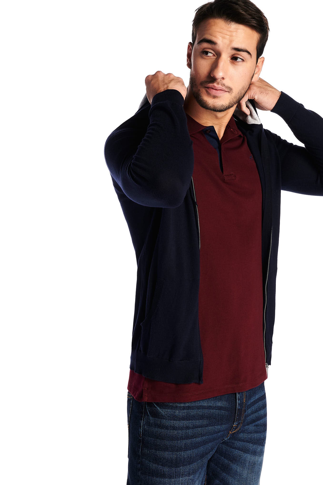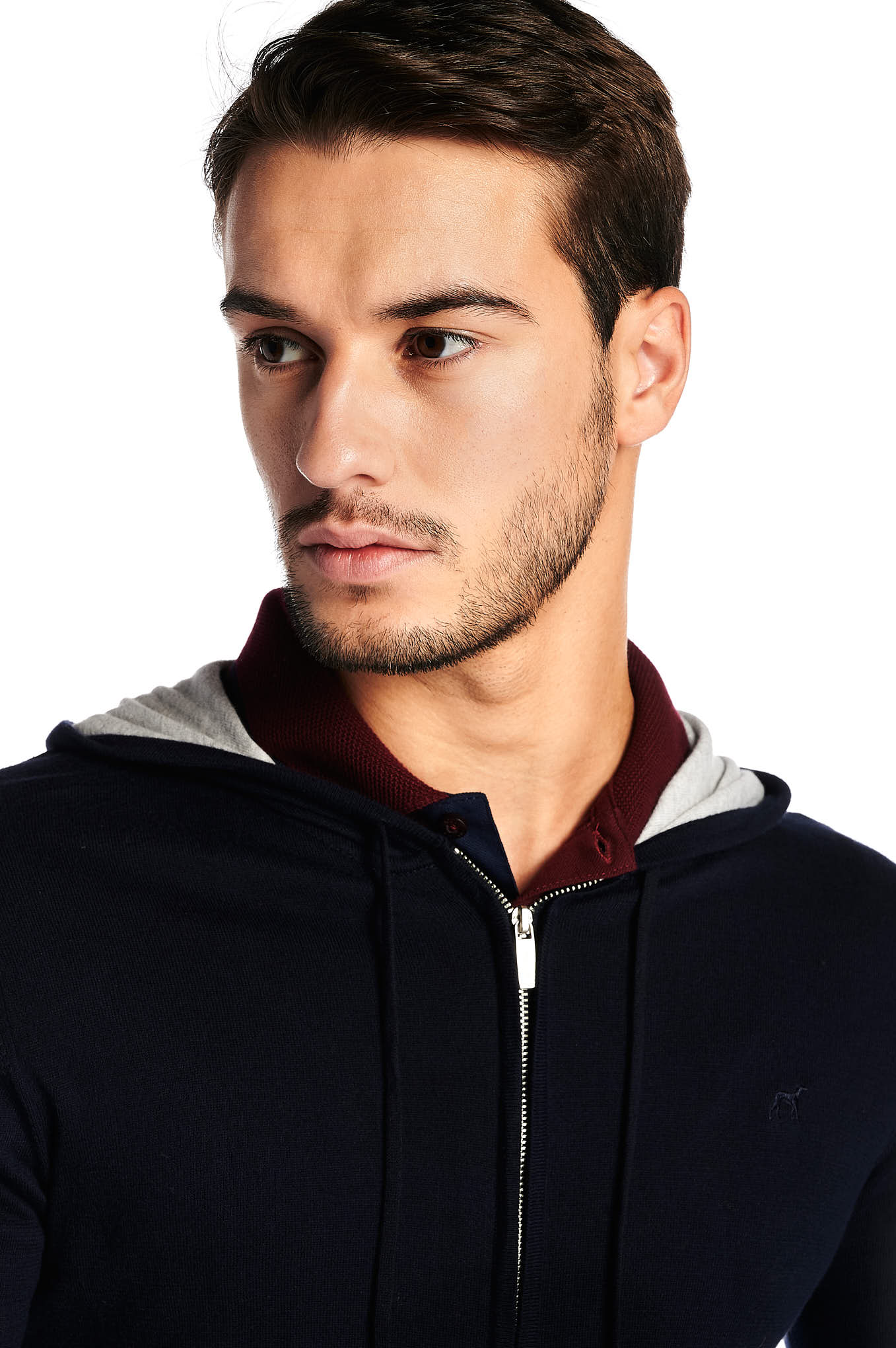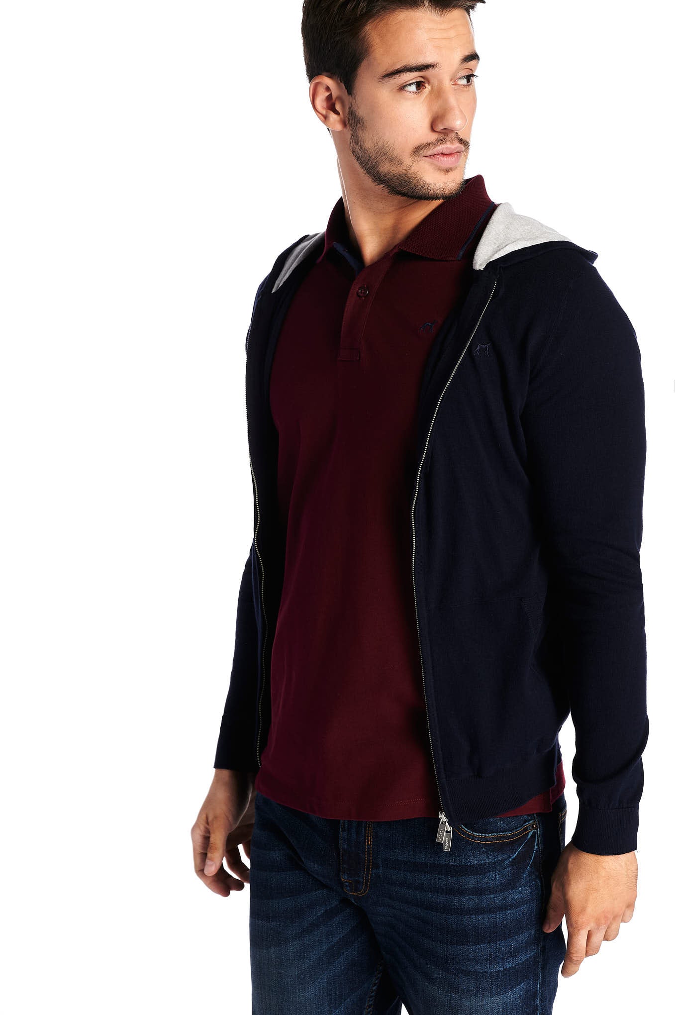 Men's plain cardigan with lined hood and cords to adjust. Regular cutting model, wider silhouette in a practical and relaxed model. Ribbed finish. Side pockets. Sacoor logo embroidered on the chest pocket. Set fine mesh 12-14, very confortable. Wwith zip. In pima cotton, which is soft and light, and is very durable and easy to maintain. Collection Autumn / Winter 2019 is available in the online store Sacoor Brothers