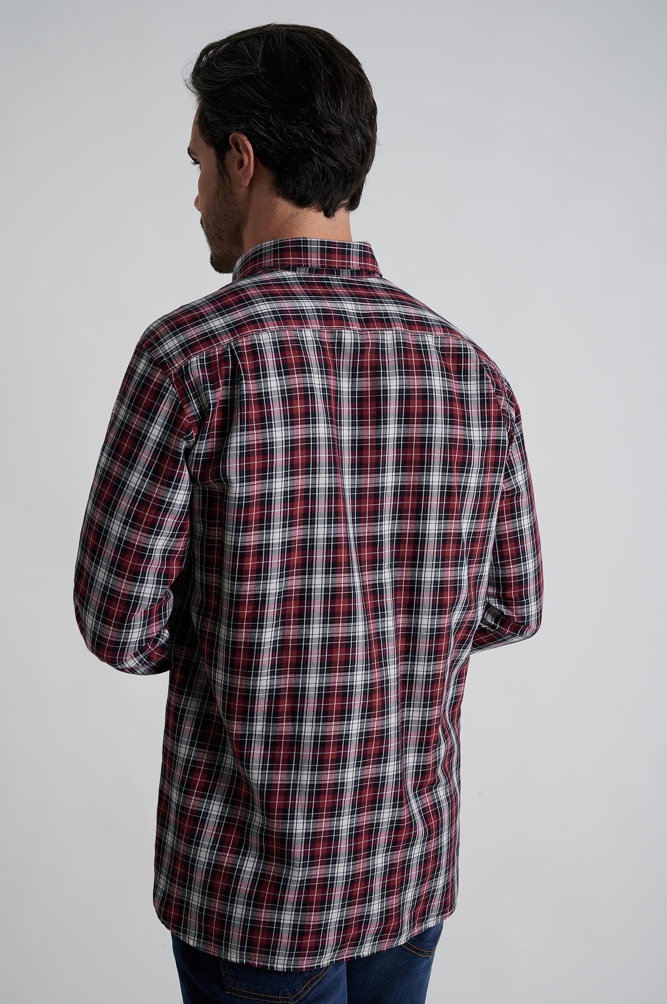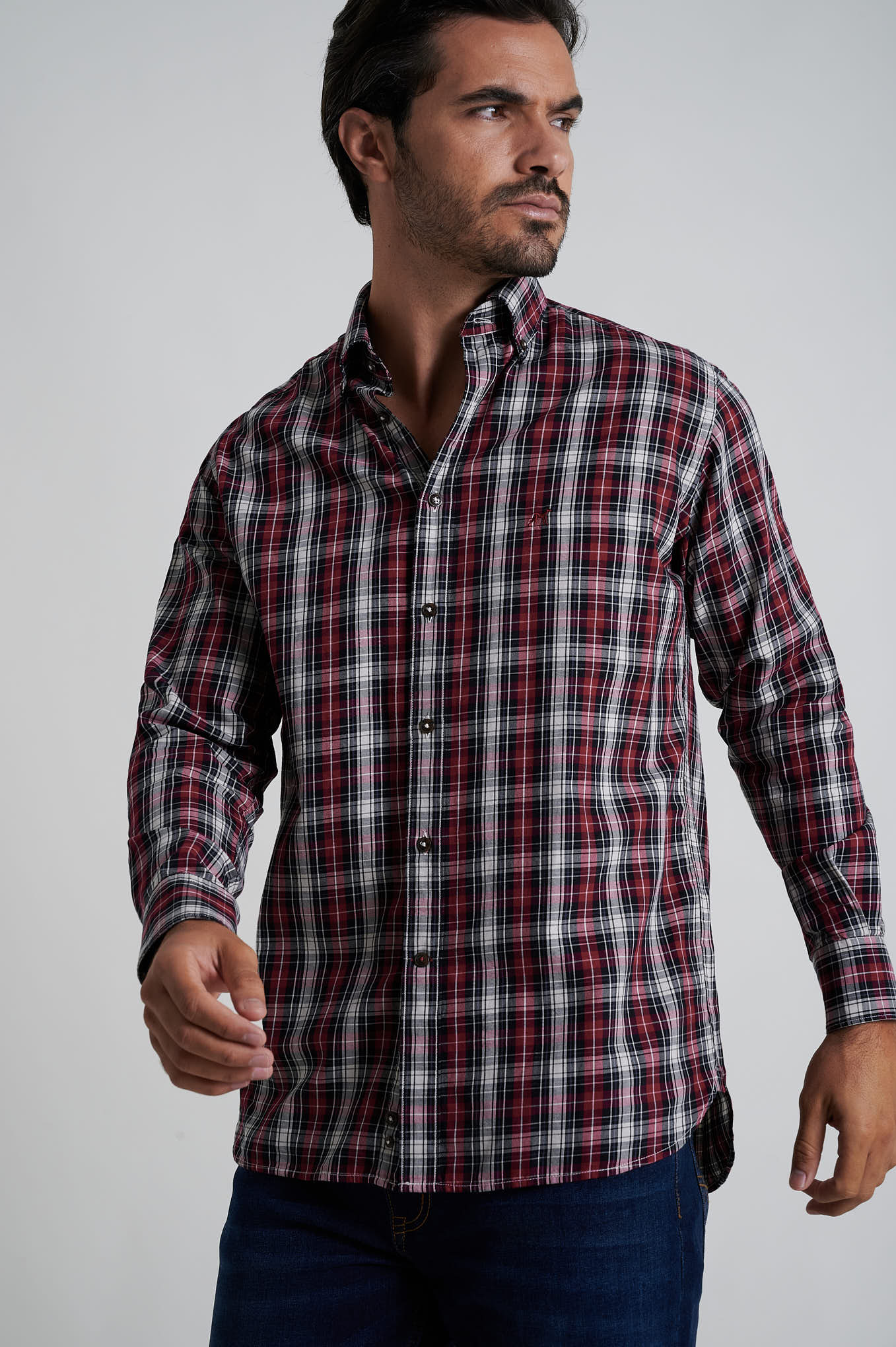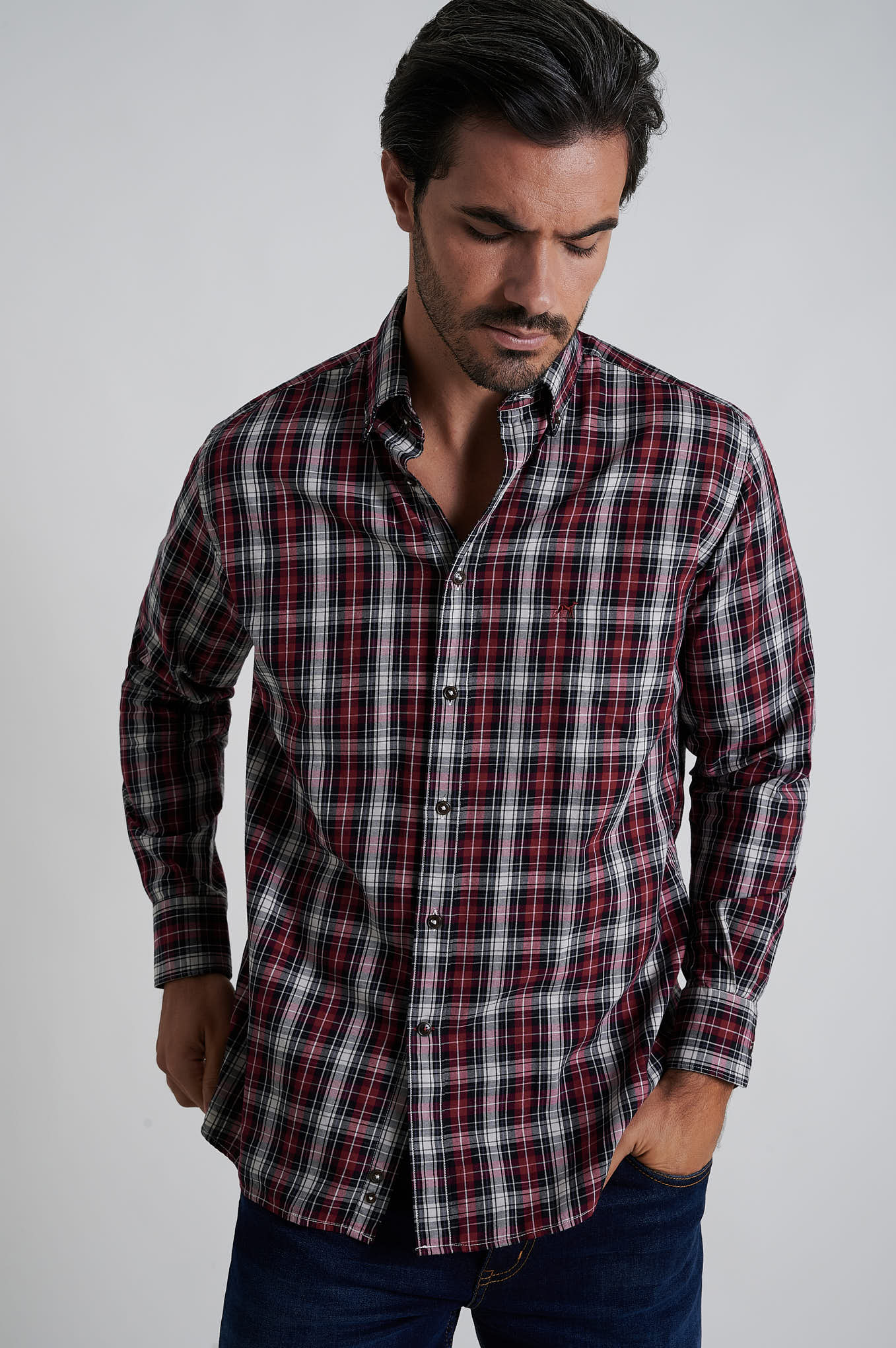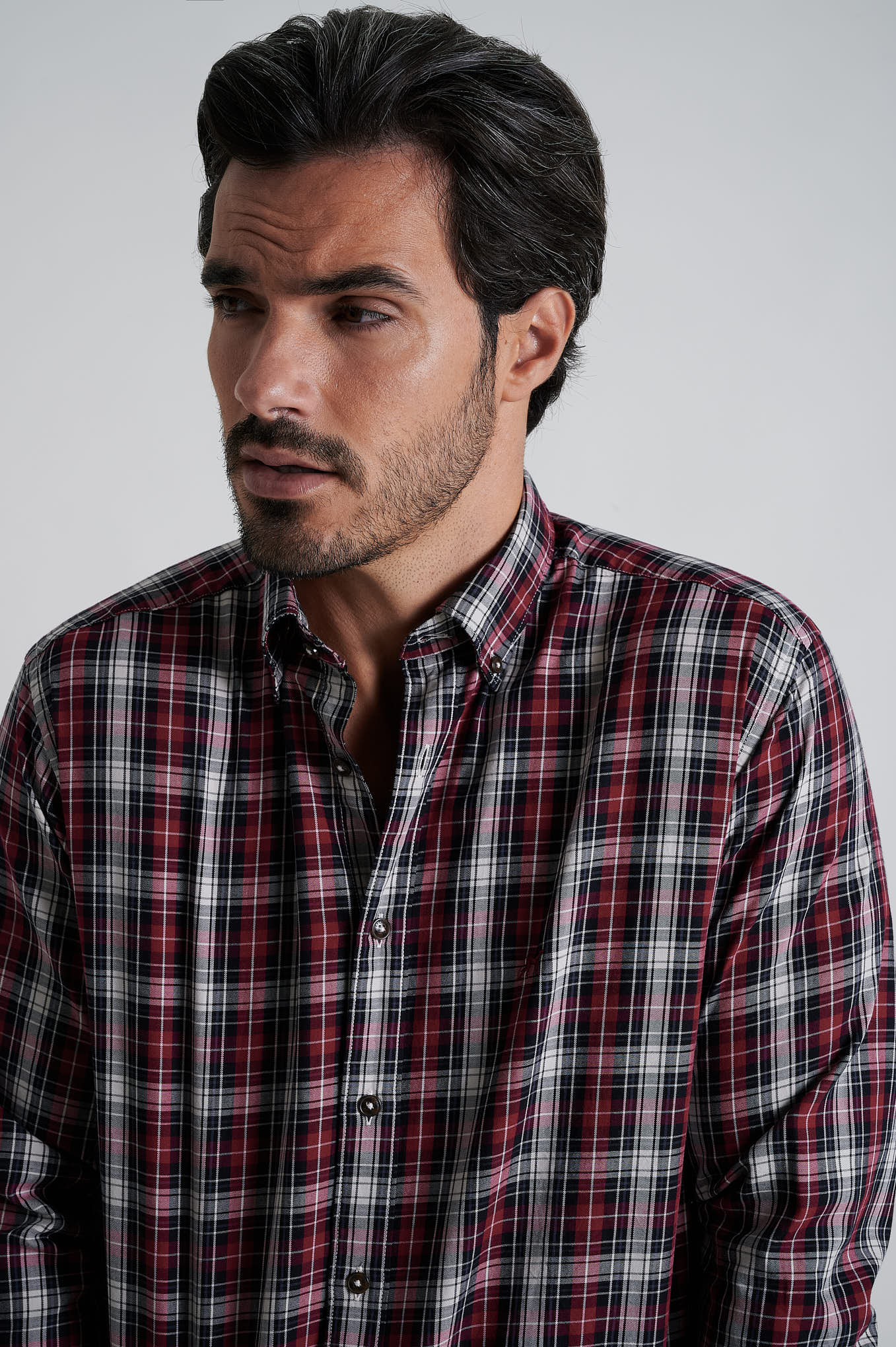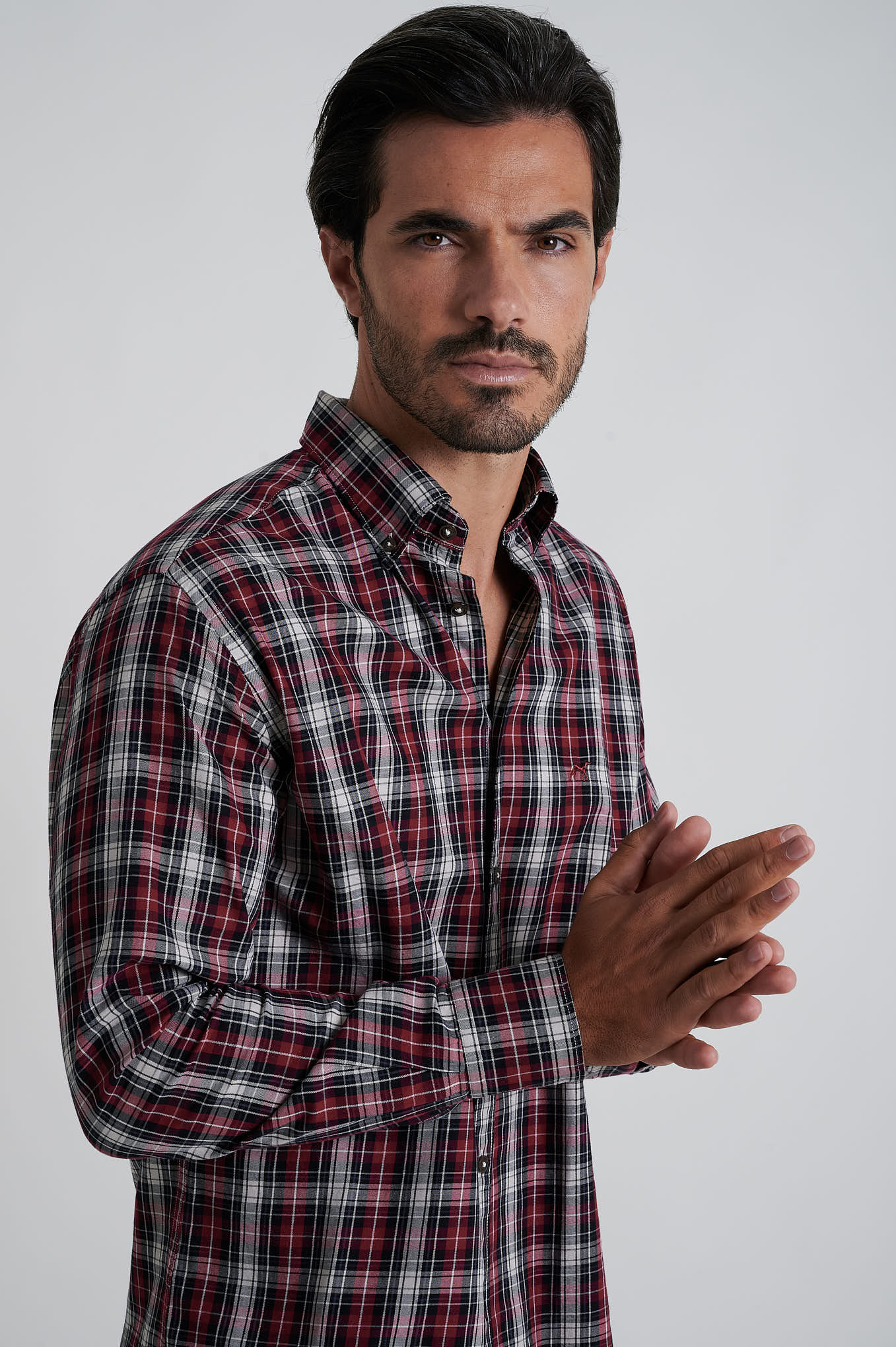 Men's plaid shirt in 100% cotton. Open collar with buttons. Logo Embroidered Sacoor on the chest. English seams, more comfortable and for a quality finish. Side reinforcement of the triangle seams. Elegant and relaxed model , to use on various occasions. Available at Sacoor Brothers online store. The back length in size 40 is 78 cm and the sleeve length is 66 cm. See our Size Guide.