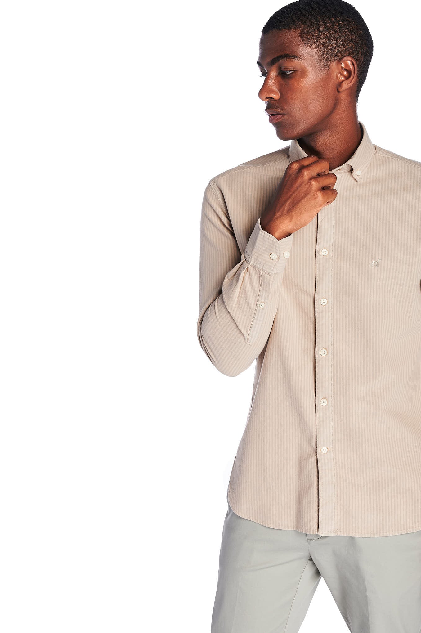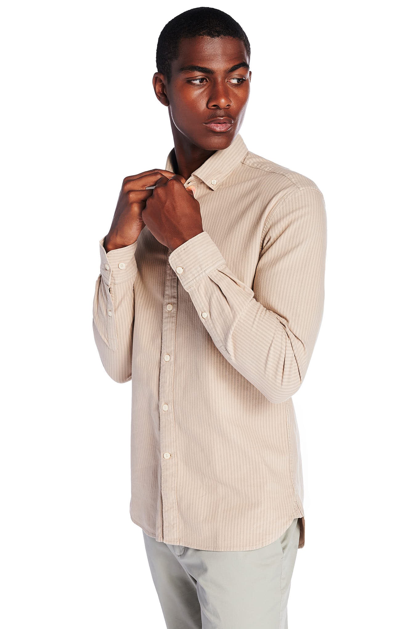Men's striped pattern shirt, in a stylish model with a sporty touch, to surprise this winter. Open collar with buttons, including on the back. Embroidered Sacoor logo on chest. More comfortable English stitching and finishing Triangle stitching side reinforcement Cotton and spandex for comfort and freedom of movement. Available at Sacoor Brothers online store. The back length in size 40 is 78 cm and the sleeve length is 66 cm. See our Size Guide.