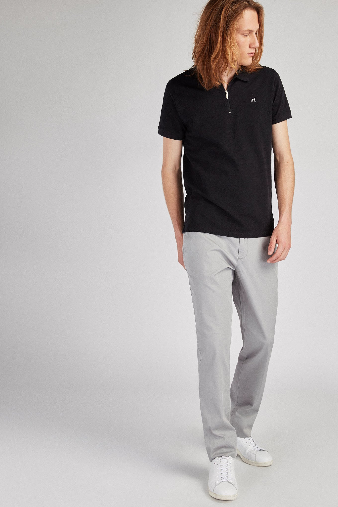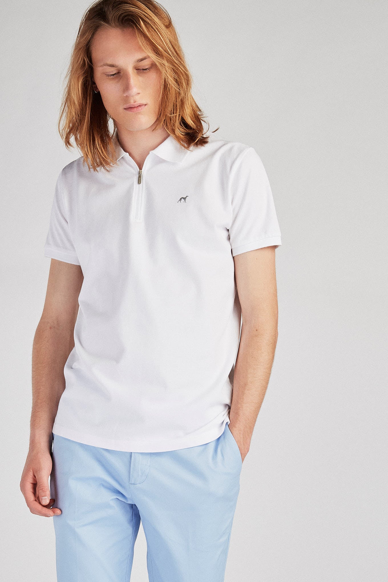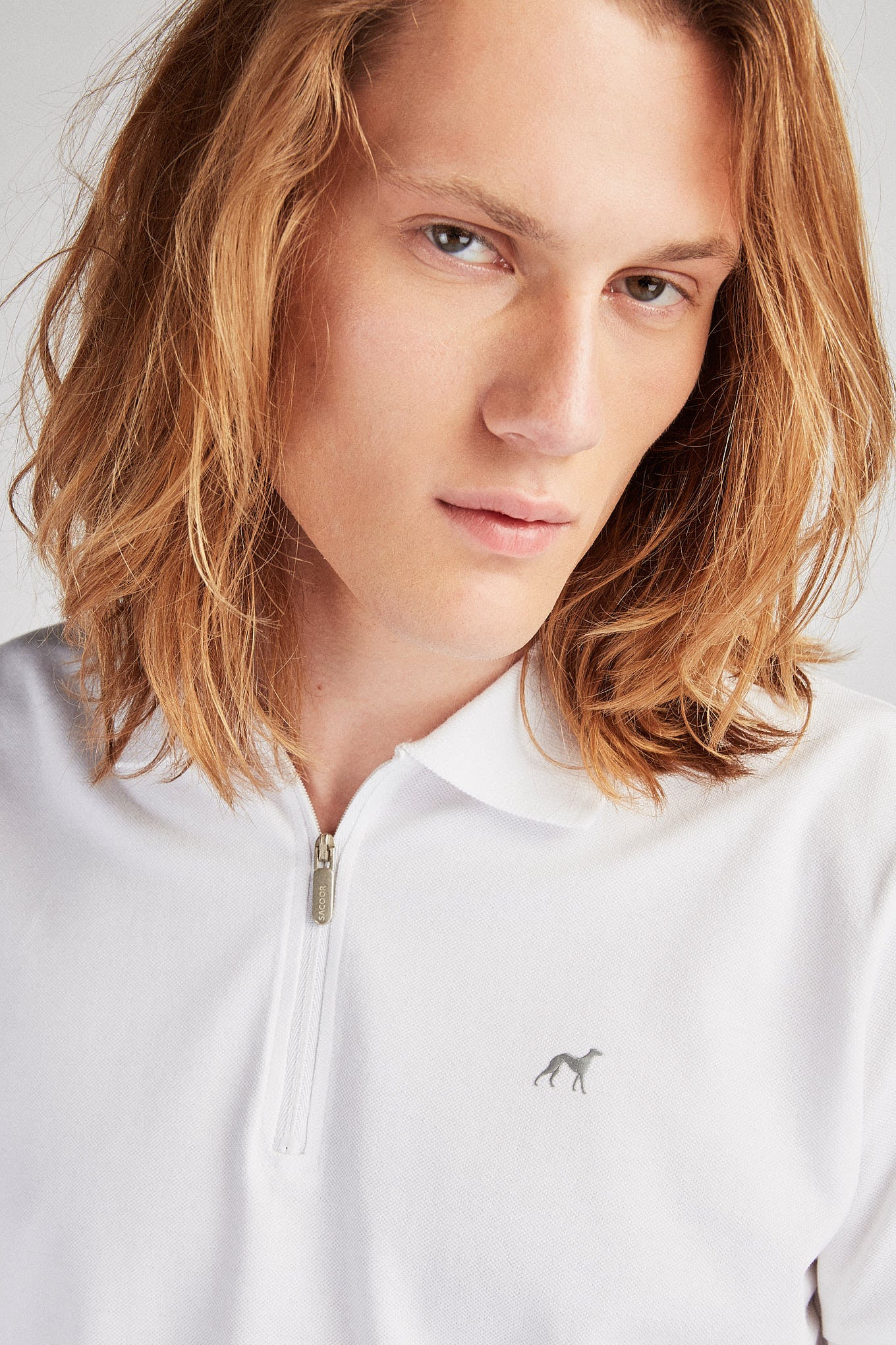 Men's short-sleeved polo piquet shirt, in a very breathable fabric. Silicone Sacoor logo on the front. Original neckline, with zipper with customised Sacoor puller. Ribbed trims on sleeves and collar. Slight side vents. Simple and versatile piece for a casual look.