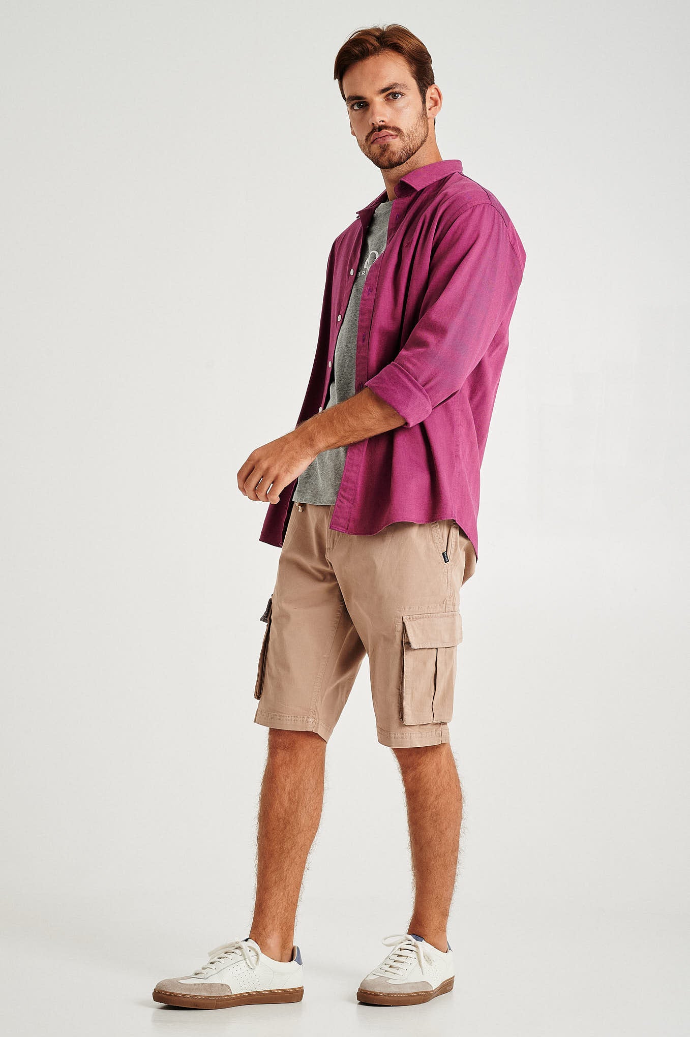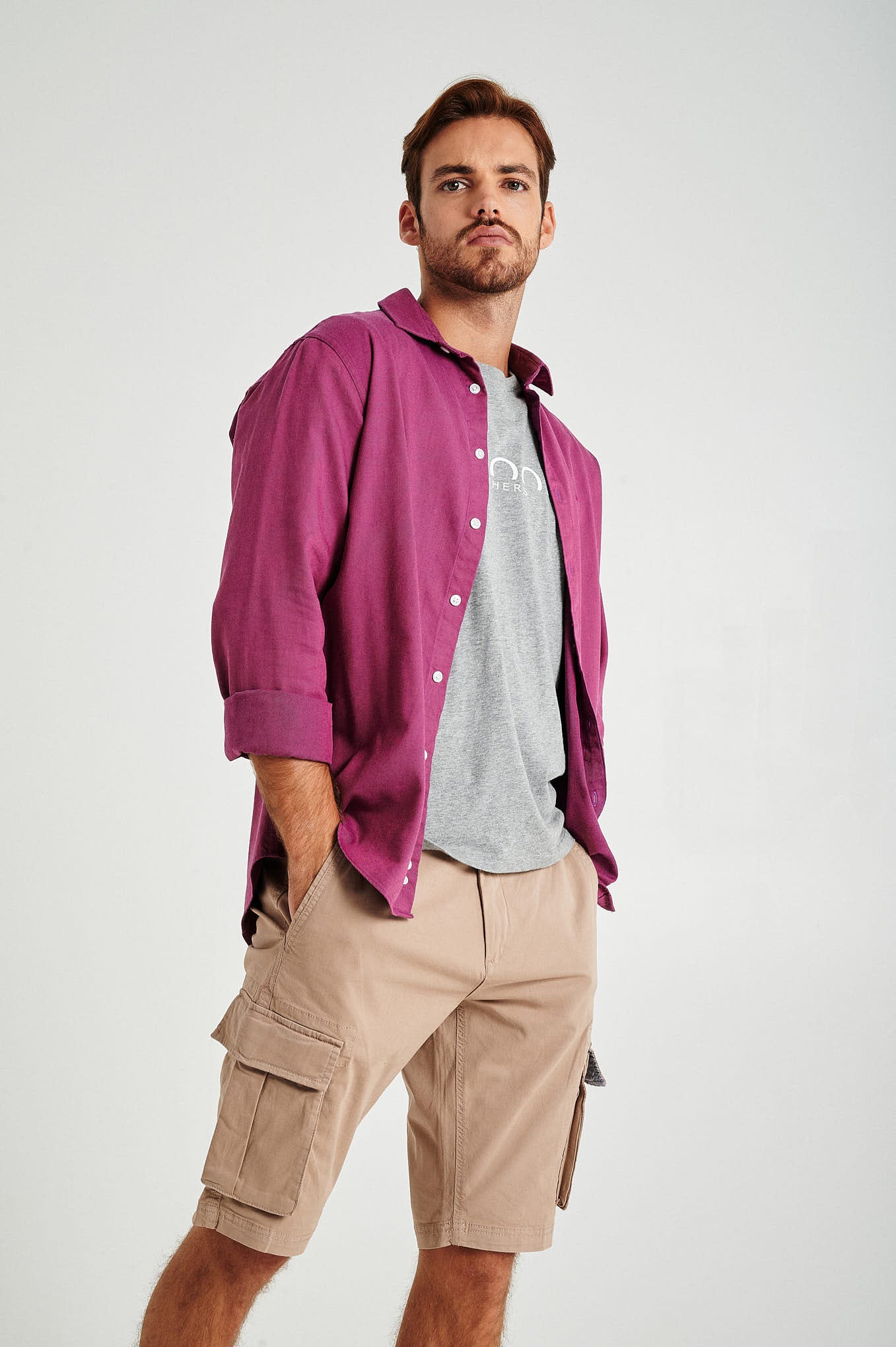 Plain pastel coloured with organic cotton cargo bermuda shorts