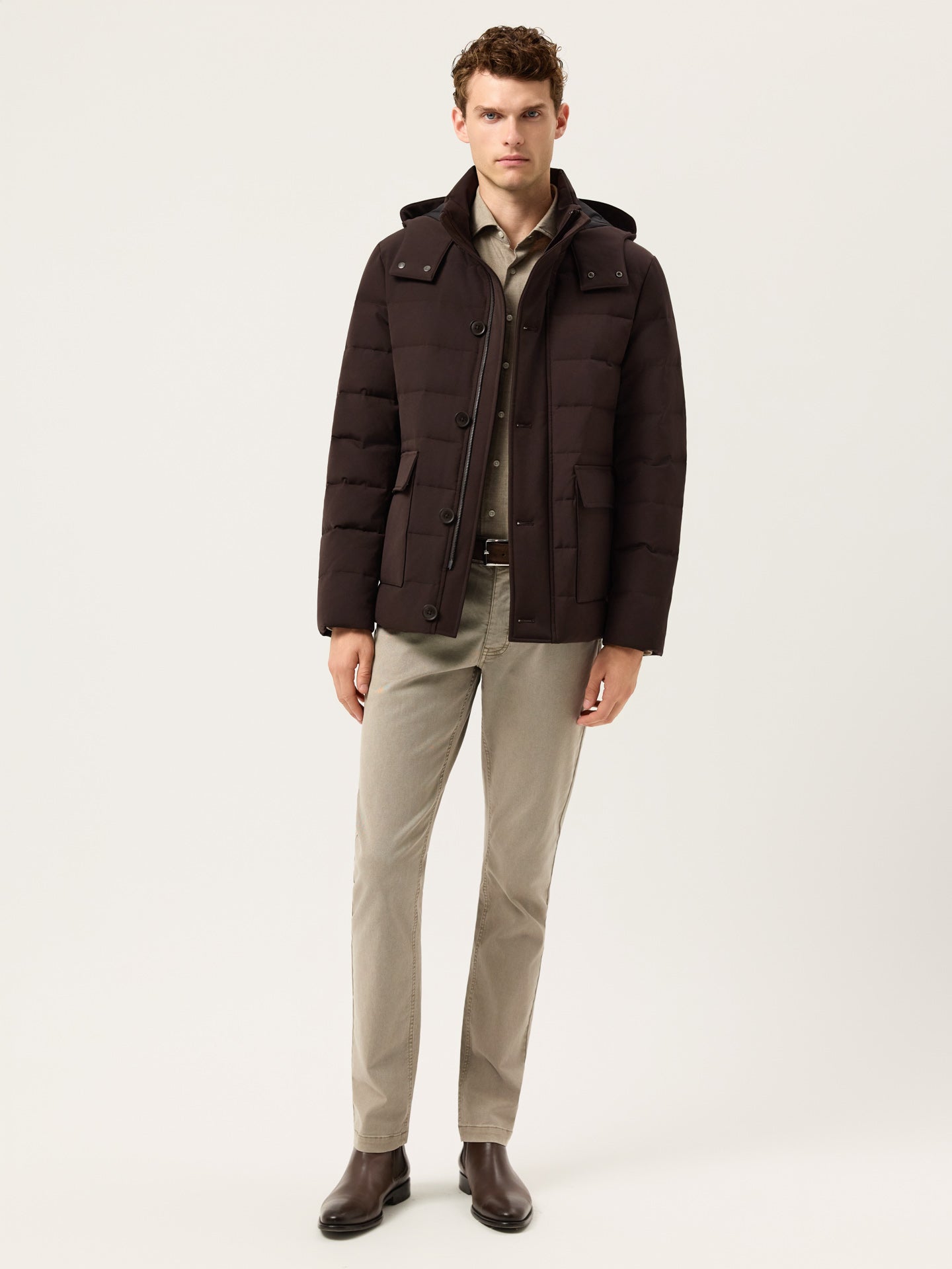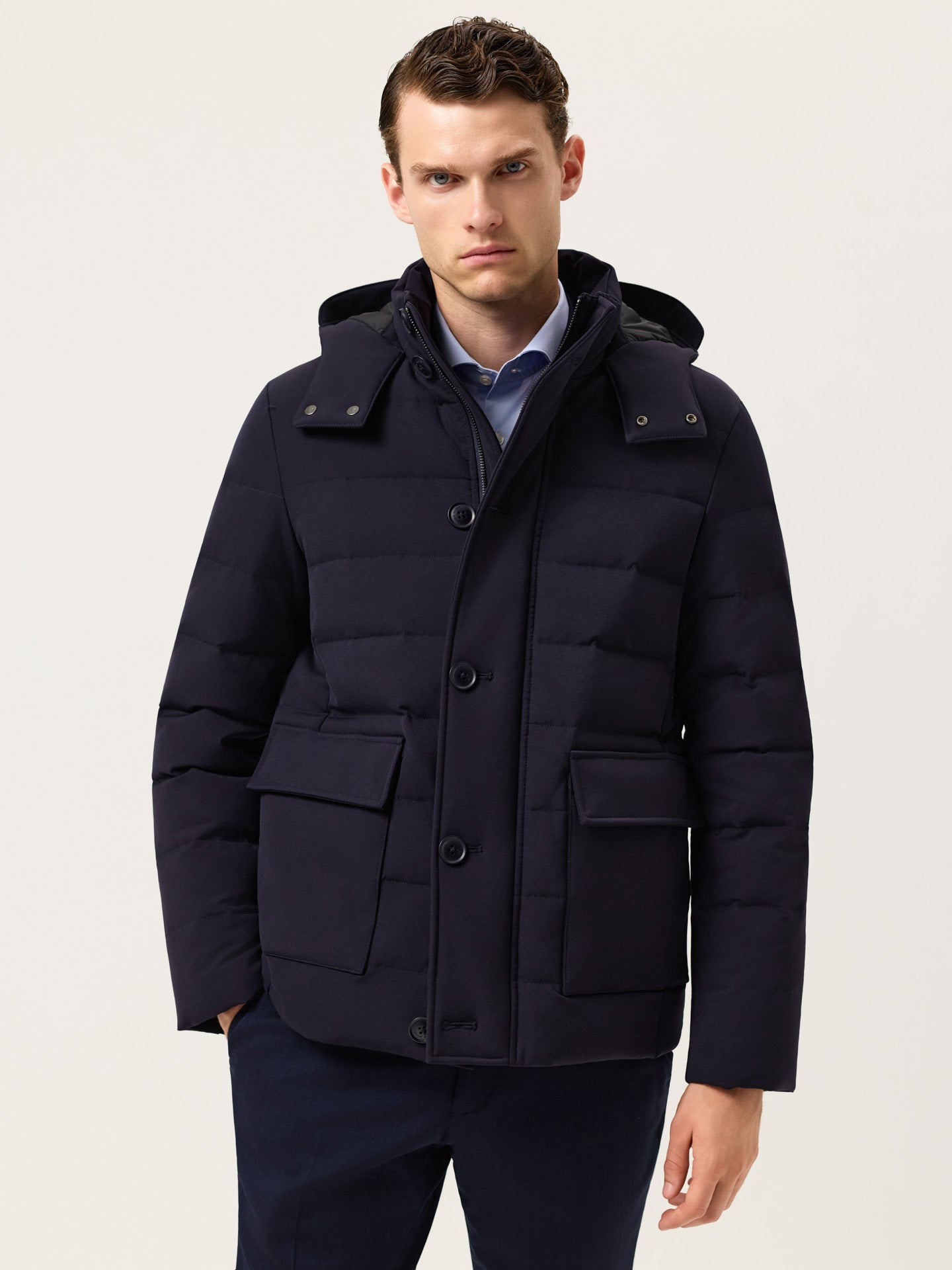 Real Down Jacket With Snap-Off Hood