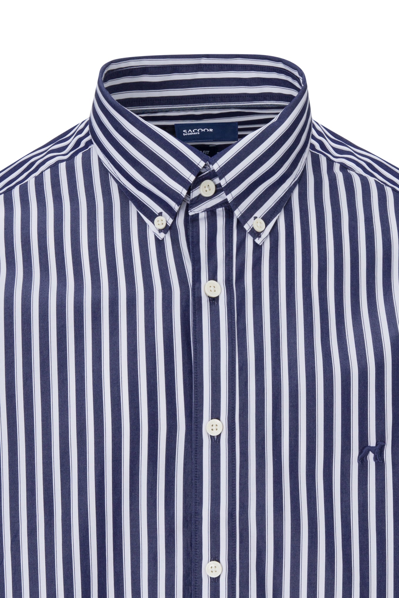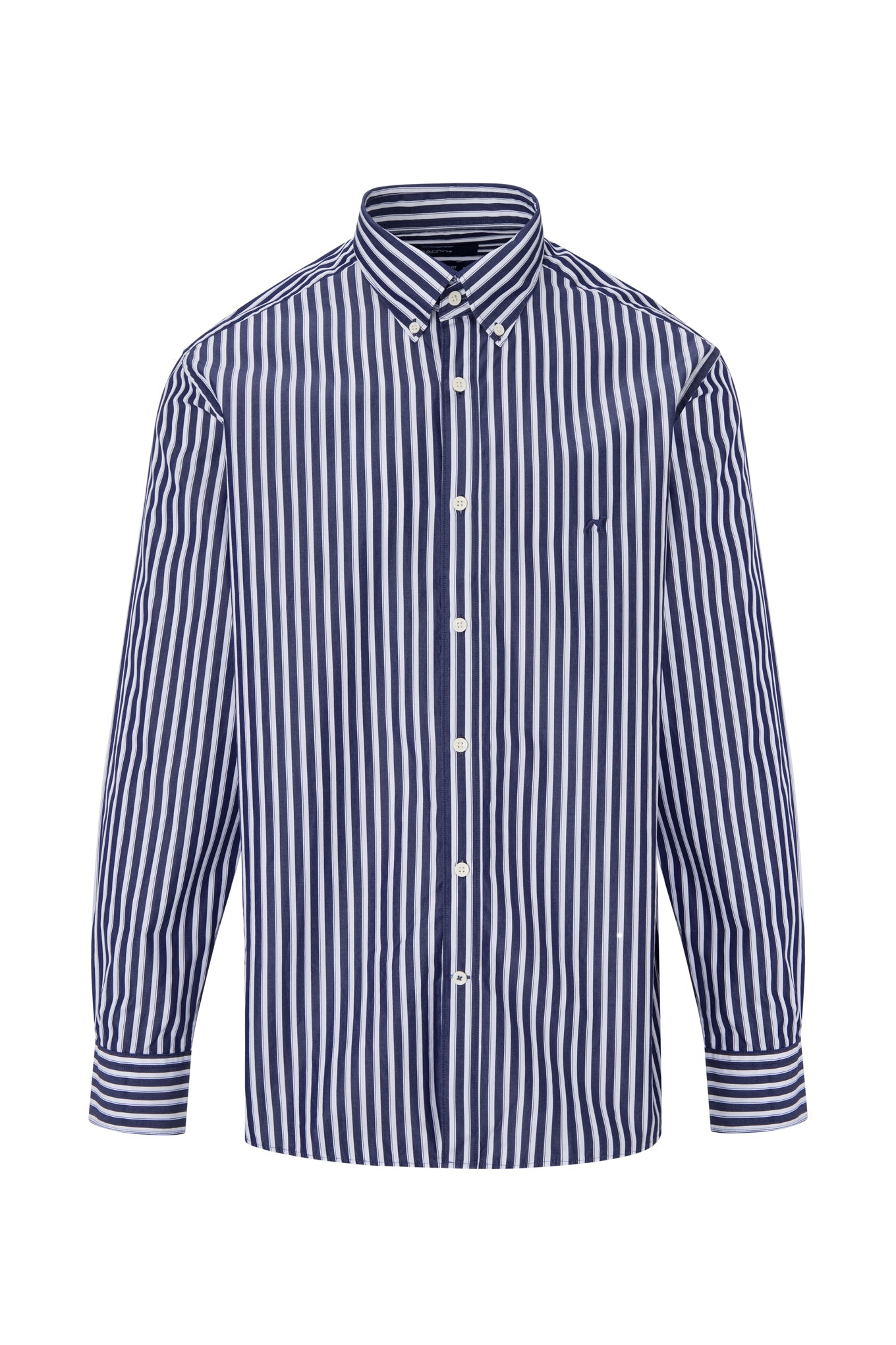 Striped sport shirt, fabric made of 120's double luxury cotton. Features a regular fit. Button-down collar with button-up fastening through engraved buttons. Long sleeves with single cuffs with 2 buttons.