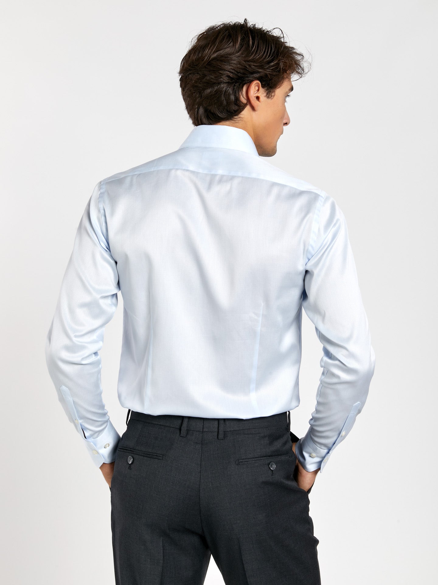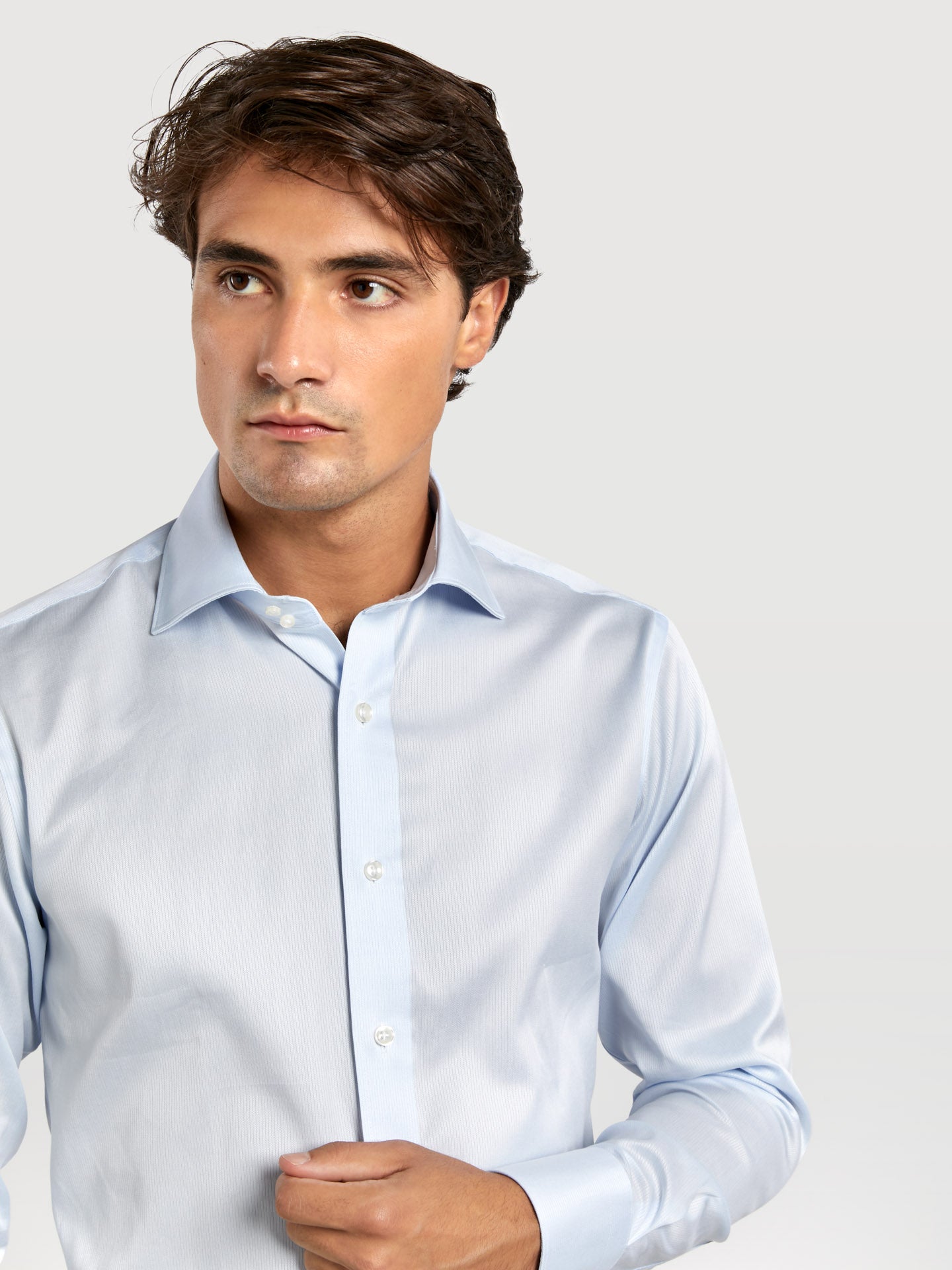 Business line shirt in plain structure. Fabric made of 100% cotton. Featuring slim fit, Cambridge collar, front button-up fastening. Long sleeves with single cuffs with 2 buttons. Side gussets in self fabric. All shirts have regular fitting measures from size 44. Thanks to impeccable workmanship, the finest materials, taste, and passion, our business shirt is perfect for any formal occasion, where the most important thing is to look clean-cut, elegant, and understated.
