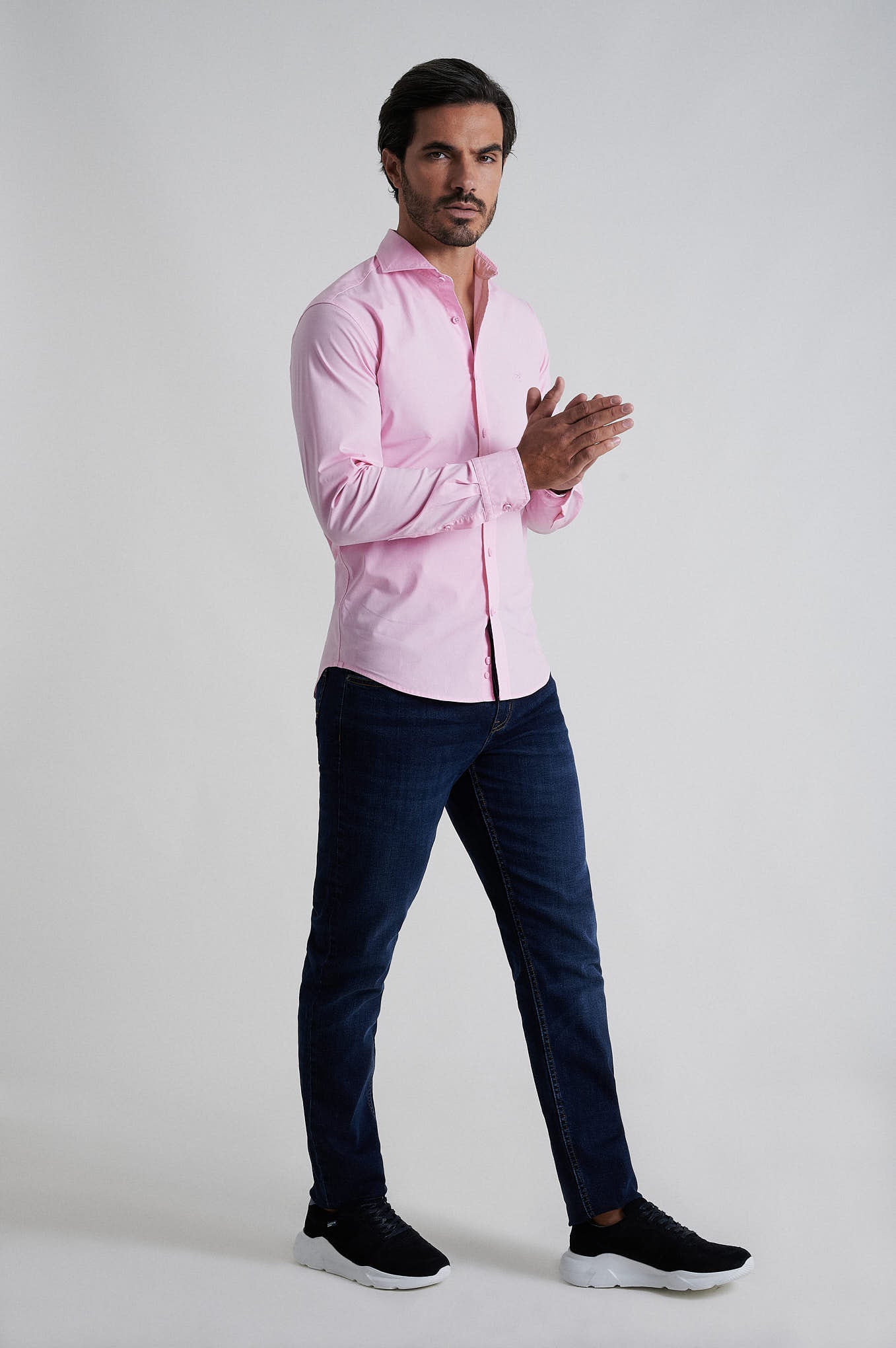 Slim fit cotton elastane comfort poplin shirt in garment dye