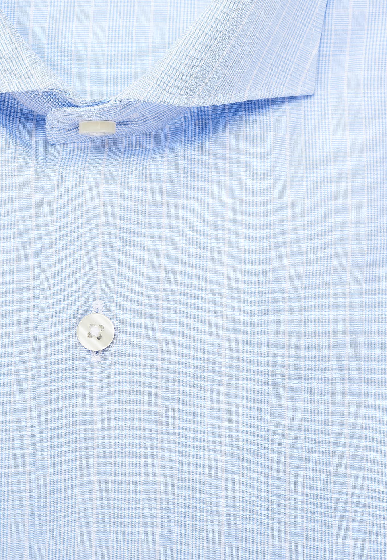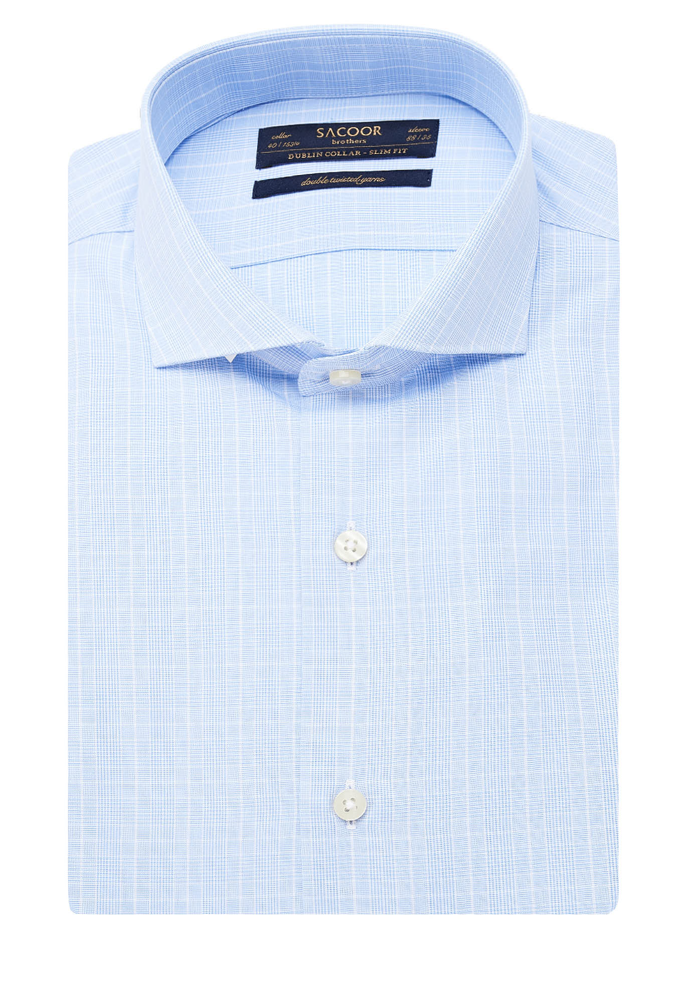 This shirt is made with 100% cotton fabric. With exceptional looks and the utmost care, this slim fit shirt has special details such as engraved buttons on a single placket. Featuring a Dublin open collar and front fastening through seven buttons. Long sleeves with single cuffs with 1 button. Side gussets in self-fabric.