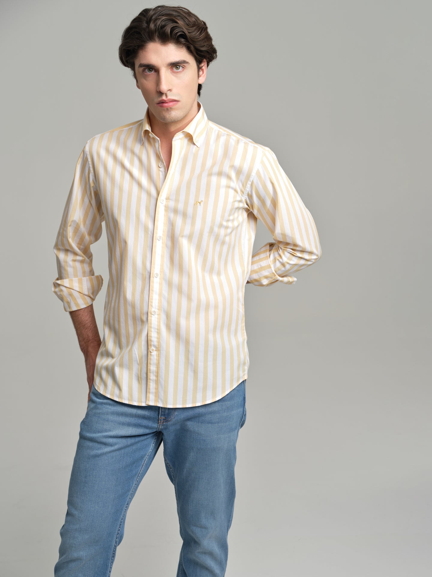 Slim fit sport striped BCI Cotton shirt