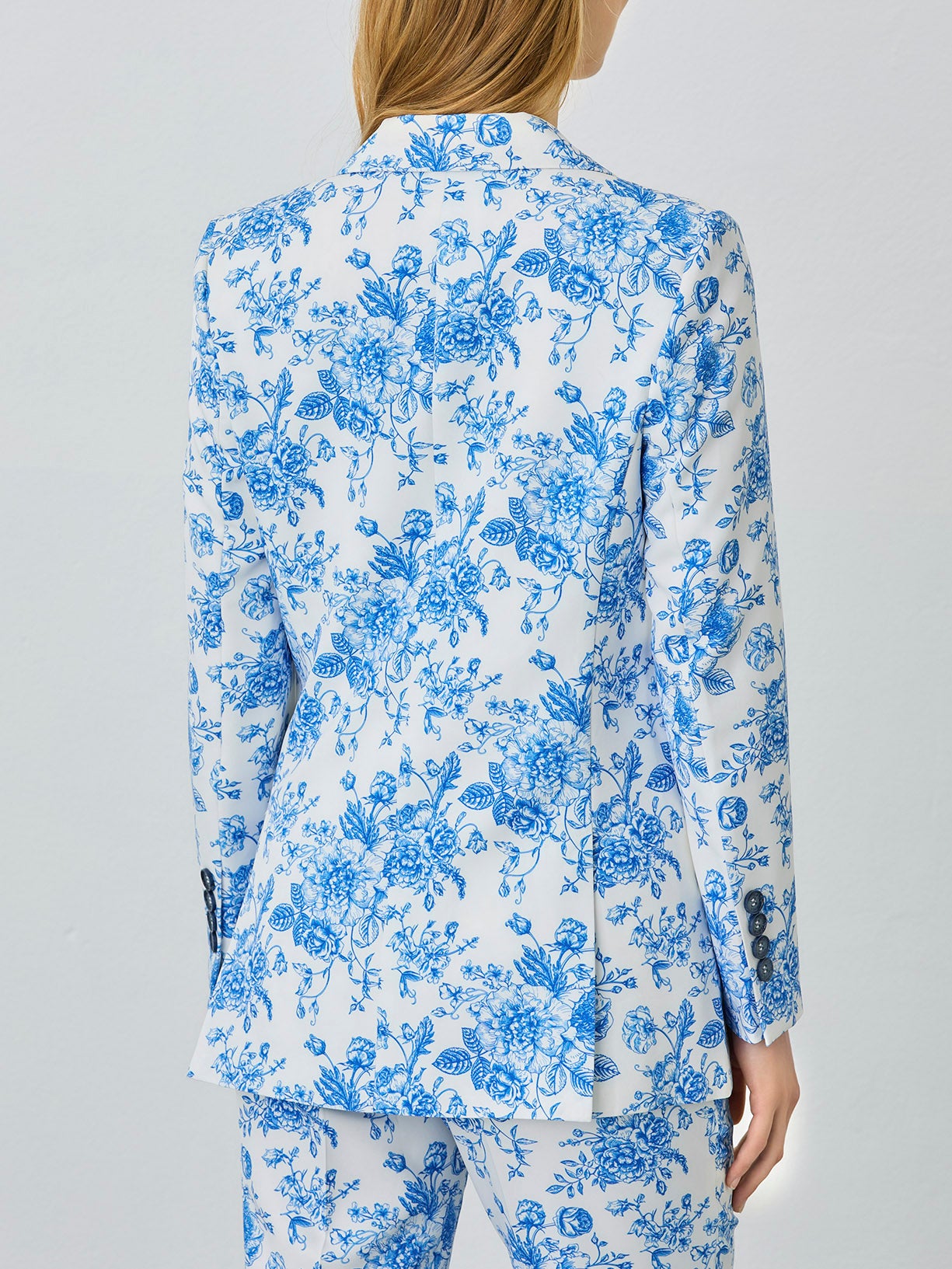 Double-Breasted Suit Blazer In Rayon Blend With Floral Print