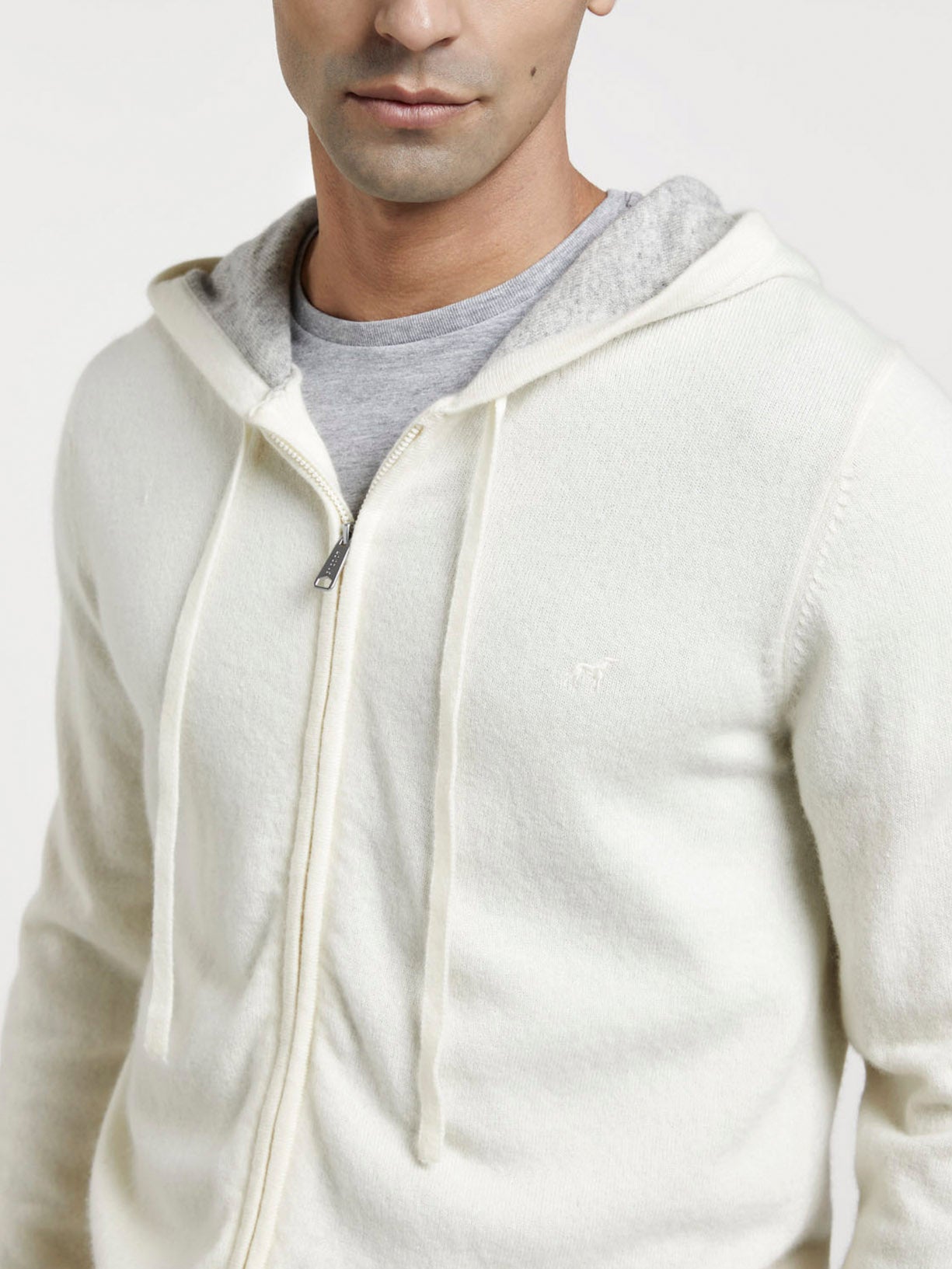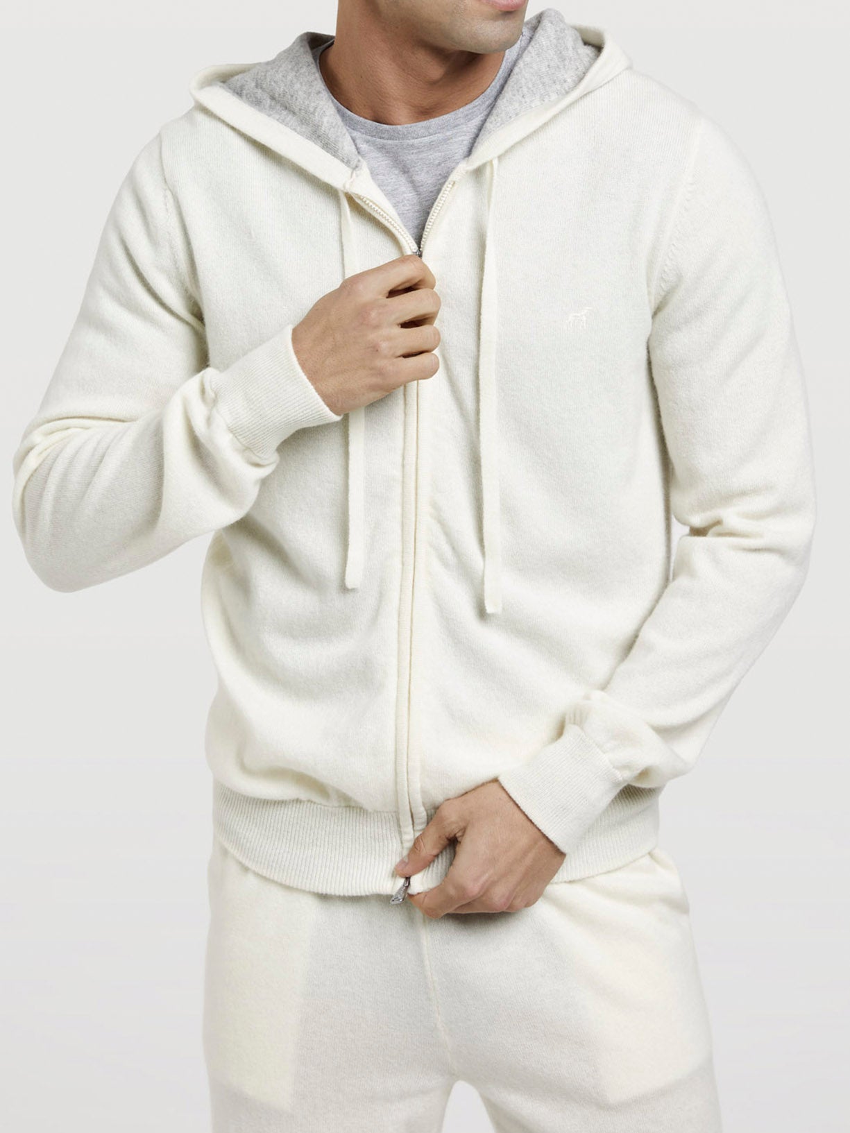 Hoodied cardigan made of Wool and Cashmere blend. This garment is part of our Luxeleisure edition. Featuring tone on tone chest logo embroidery, flag label at side and zip fastening on front. Cuffs and bottom with rib, fully fashion at shoulders seams and armholes to offer comfort and elegance. Luxeleisure line explores the space between refinement and relaxation, comfort and effortless style, functionality and elegance.