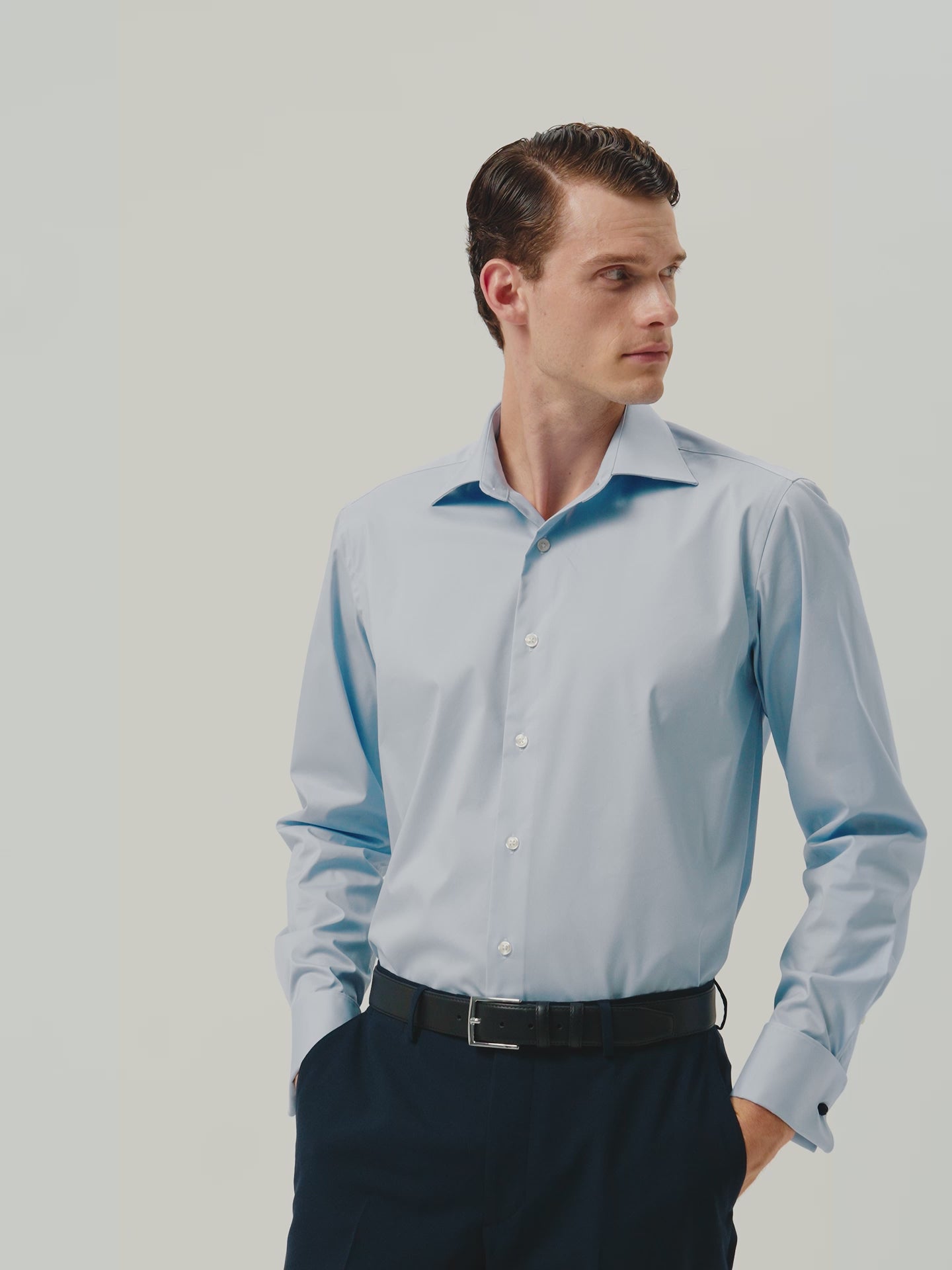 Regular Fit Cotton Stretch Travel Shirt With Oxford Collar And Double Cuff